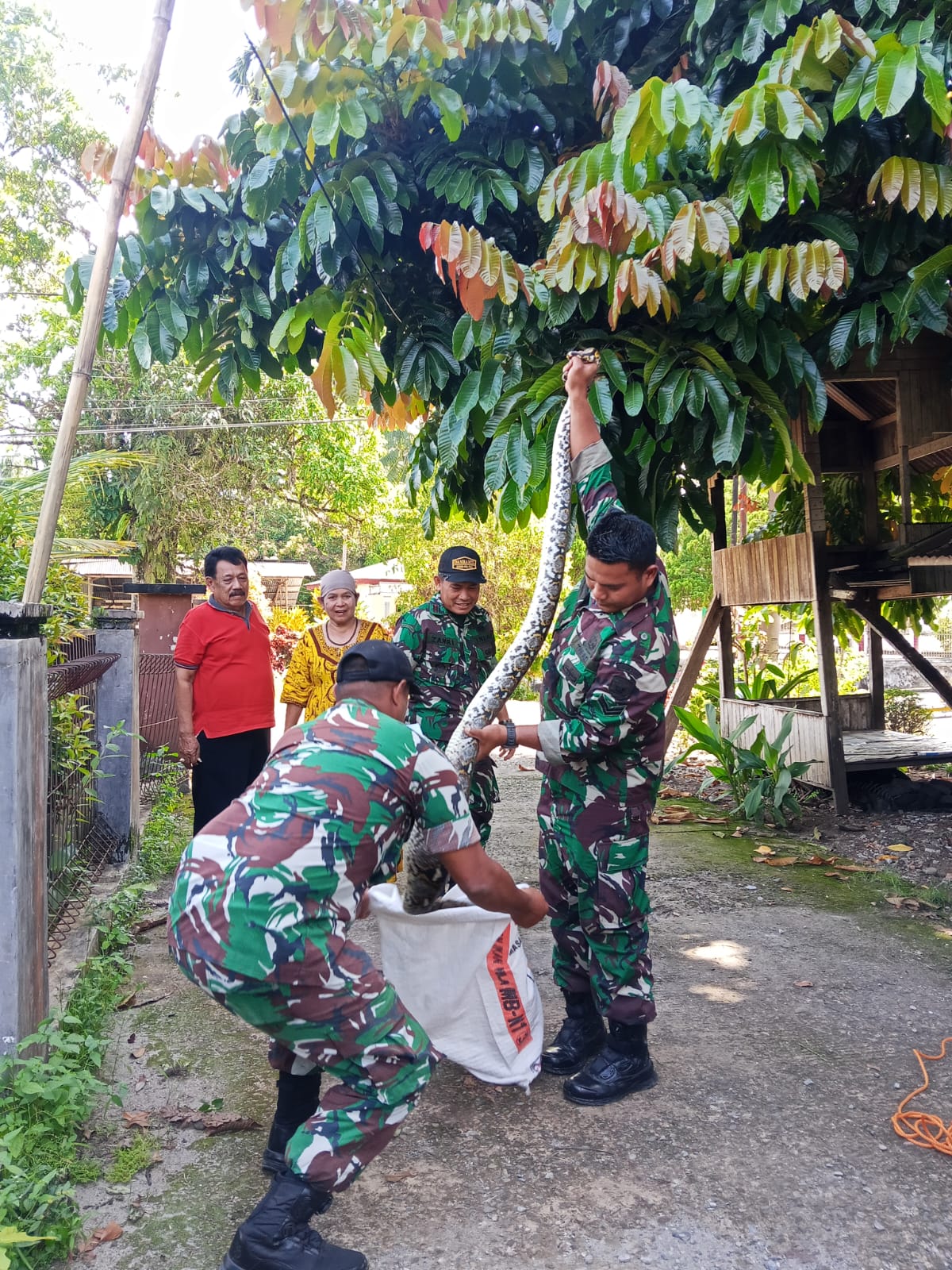 Dengan sigap dan tetap memperhatikan keselamatan lingkungan sekitar, Sertu Hendra Petuma bersama warga berhasil mengamankan ular tersebut sehingga tidak menimbulkan ancaman bagi masyarakat.