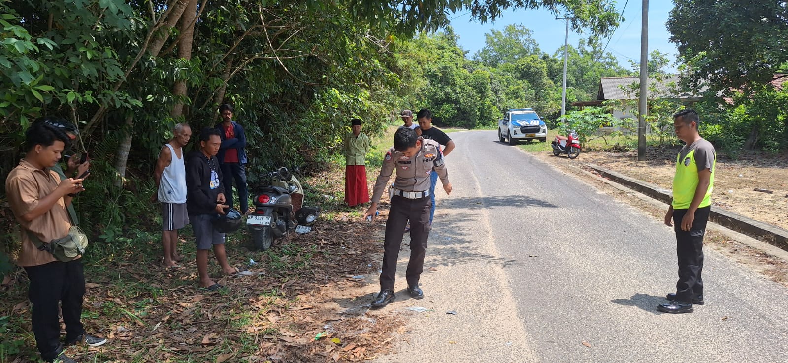 Ambulans Bawa Pasien Tabrakan di Jalan Desa, Polres Bangka Barat Lakukan Olah TKP Kecelakaan Maut