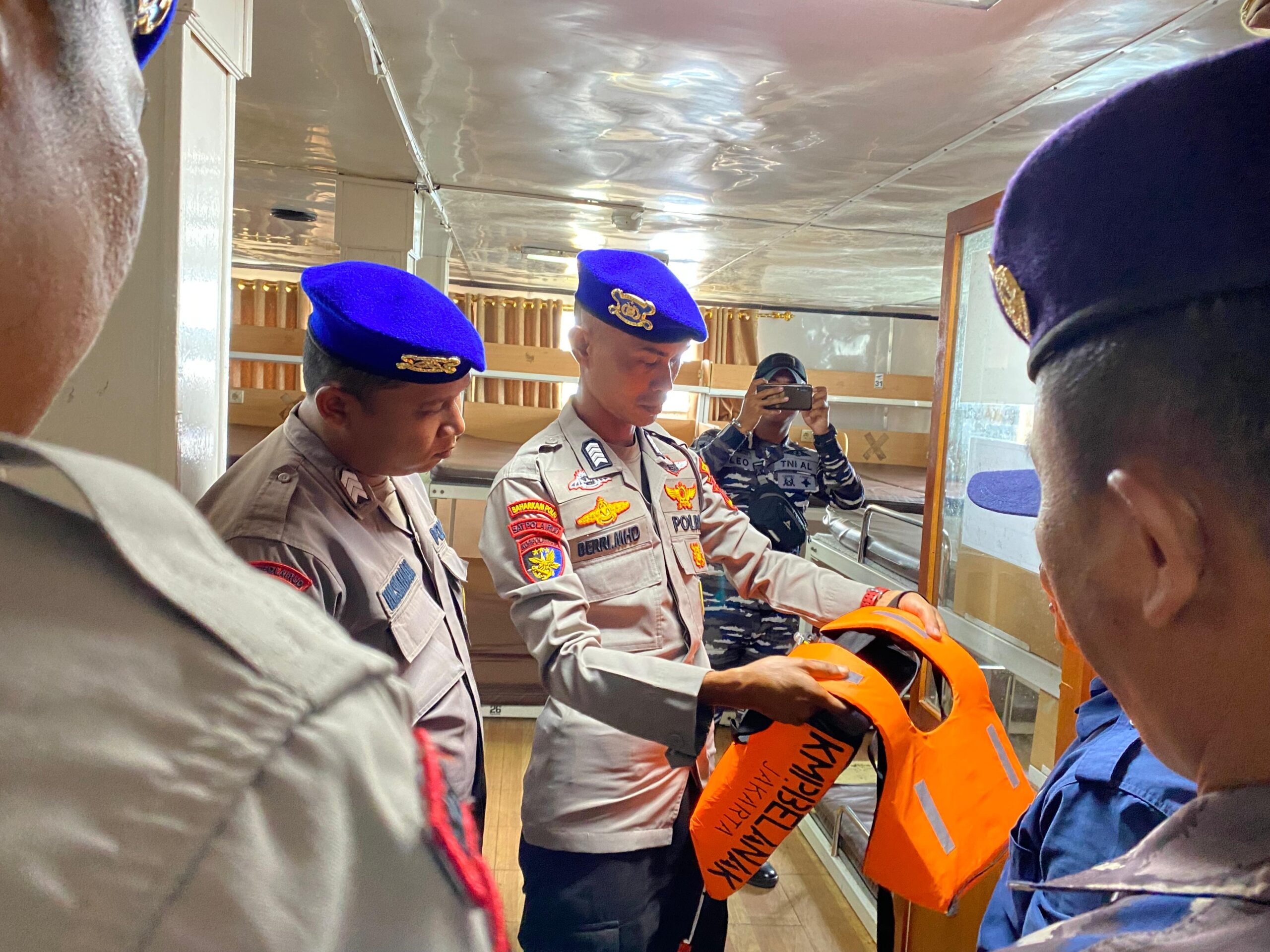 Selain menyampaikan pesan keselamatan, tim juga melakukan pengecekan terhadap sejumlah perlengkapan keselamatan kapal, seperti pelampung, alat pemadam kebakaran, sekoci, dan kelengkapan administrasi pelayaran. Hal ini guna memastikan bahwa kapal dalam keadaan siap dan layak untuk melakukan perjalanan laut.