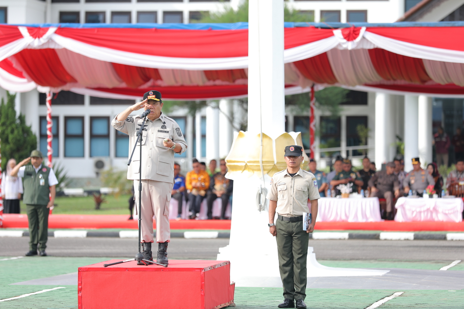 Gubernur Babel, Hidayat Arsani bertindak sebagai pembina apel dan melibatkan seluruh unsur jajaran Forkopimda, TNI, Polri, Basarnas, dan PMI. Gubernur Hidayat dalam amanatnya menegaskan bahwa pemerintah daerah harus selalu dalam kesiapsiagaan sebagai kunci utama untuk menimimalisir risiko dan melindungi keselamatan masyarakat. Dirinya juga mengimbau selalu cepat memberikan informasi akurat kepada masyarakat tentang edukasi menanggulangi bencana.