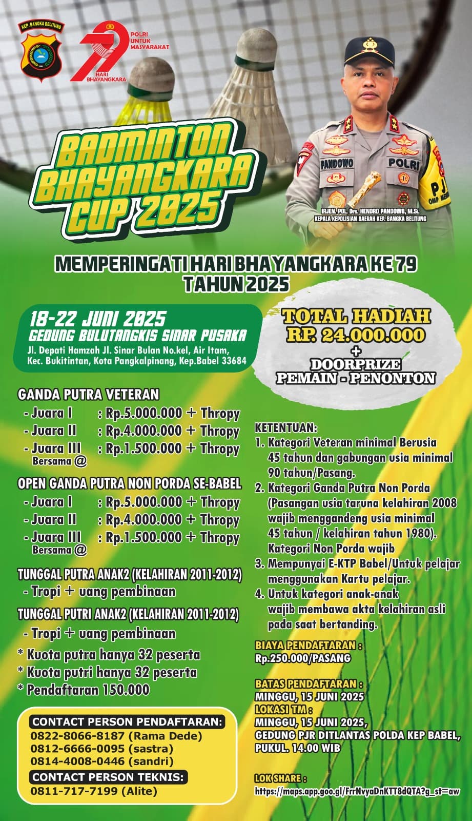 Ayo Daftar Segera!!! Polda Babel Gelar Turnamen Badminton Bhayangkara Cup 2025