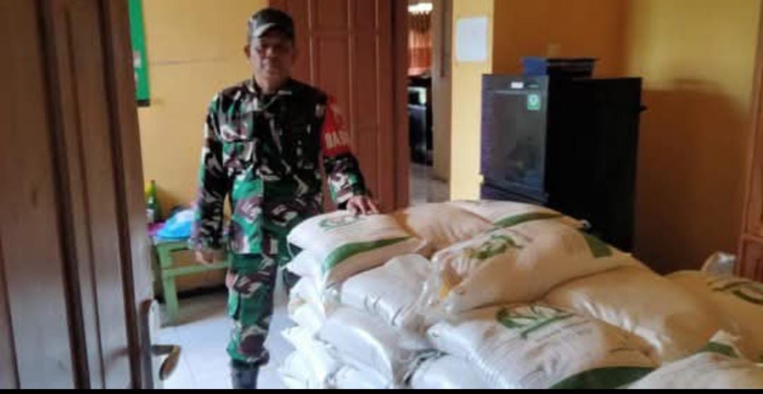 Babinsa Desa Karama Laksanakan Pendampingan Penyaluran Bantuan Pangan Beras Untuk Warga Kurang Mampu