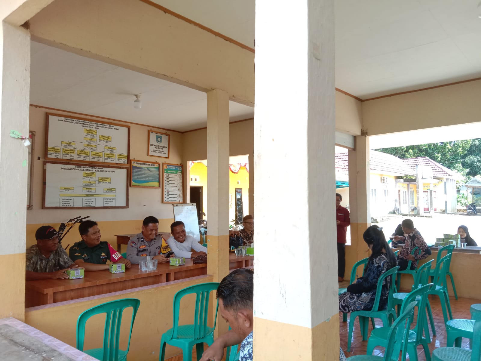 Rapat diawali dengan pembukaan, doa bersama, dilanjutkan dengan sambutan-sambutan dari Ketua BPD, Pendamping Desa Mancung, dan Babinsa Serda Arwin, kemudian diakhiri dengan penutup dan foto bersama.