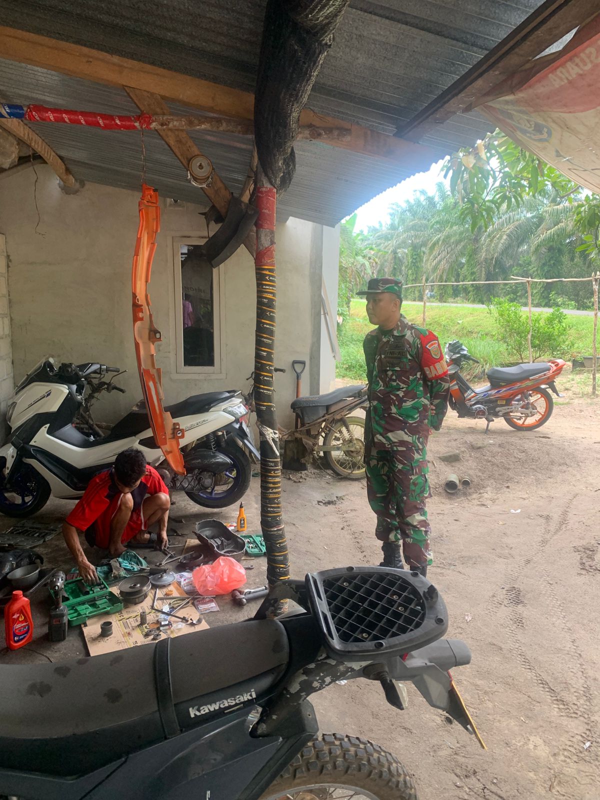 Bangka Barat, kejarberita-news.com – Babinsa Koramil 431-01/Jebus, Serda Romendo, melaksanakan kegiatan Komunikasi Sosial (Komsos) di bengkel milik Bapak Indra, yang berlokasi di Desa Sungai Buluh, Kecamatan Jebus, Kabupaten Bangka Barat, pada Minggu (28/12/2025).