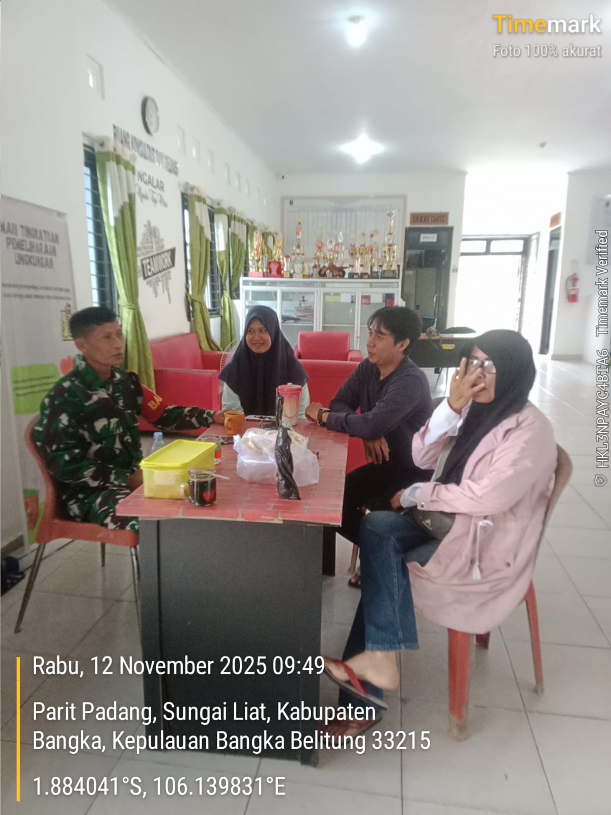 Jelitik, kejarberita-news.com – Serka Nurahman, Babinsa Kelurahan Jelitik dari Koramil 0413-01/Sungailiat, melaksanakan kegiatan Komsos di Kantor Lurah Jelitik, Rabu (12/11/2025)