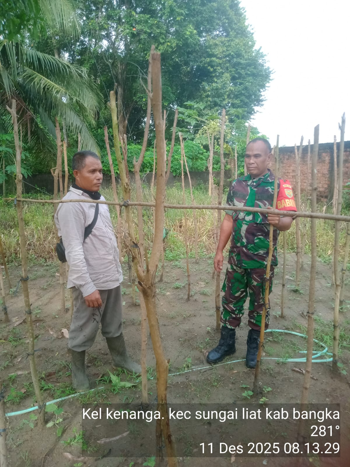 Kenanga, kejarberita-news.com – Babinsa Kelurahan Kenanga, Sertu Syahrul Watoni, melaksanakan kegiatan Komsos dengan salah satu warga binaan, Bapak Mawi, di kebunnya yang berada di wilayah Kelurahan Kenanga, Kamis (11/12/2025)