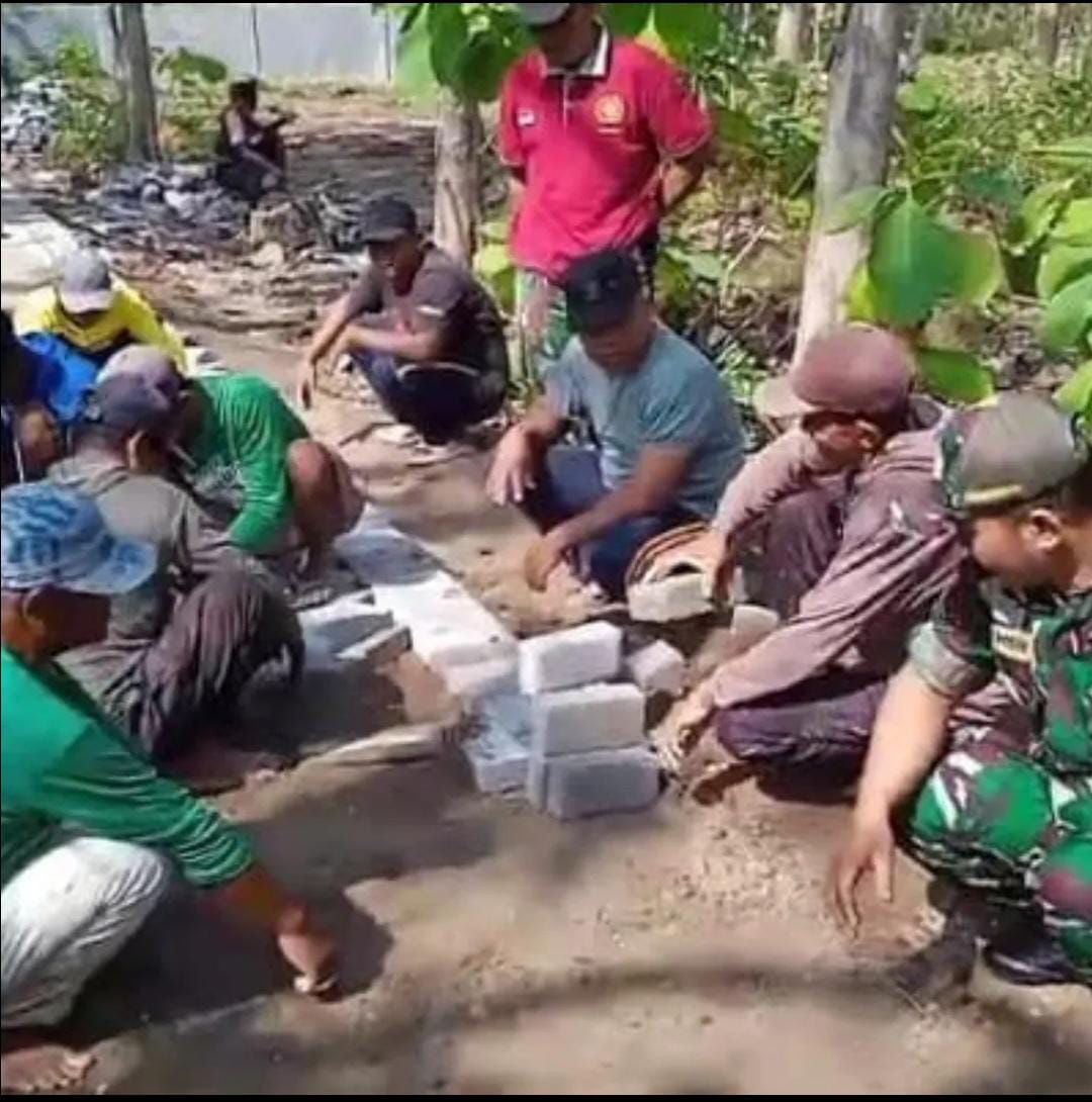 Babinsa Kodim Ponorogo Kerja Bakti Pasang Paving di Jalan Makam