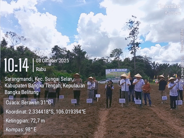 Bangka Tengah, kejarberita.com – Dalam rangka mendukung program ketahanan pangan nasional dan sebagai wujud nyata kemanunggalan TNI dan Rakyat, Serka Agus Saidi, Babinsa Koramil 413-08/Sungai Selan, menghadiri kegiatan penanaman jagung serentak kuartal V diDesa Sarangmandi, Kecamatan Sungai Selan, Kabupaten Bangka Tengah, Rabu (08/10/2025)
