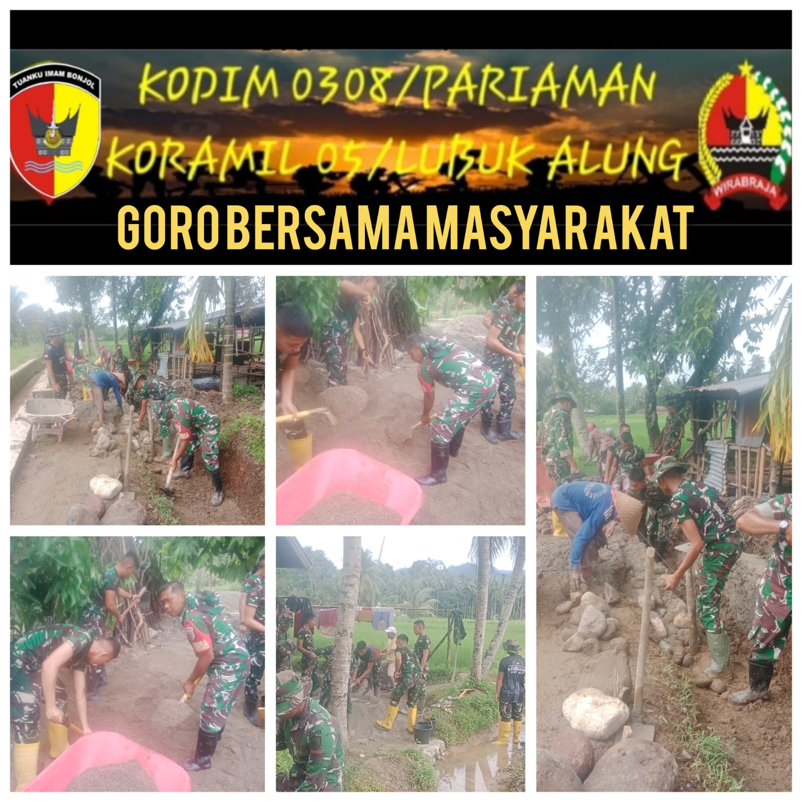 Sertu Riko Gusrianto menyampaikan bahwa kegiatan ini merupakan bentuk kepedulian TNI terhadap kesulitan masyarakat serta wujud nyata kemanunggalan TNI dengan rakyat. “Melalui kerja sama dan gotong royong, kami berharap jalan alternatif ini dapat kembali digunakan dengan aman oleh masyarakat,” ujarnya.