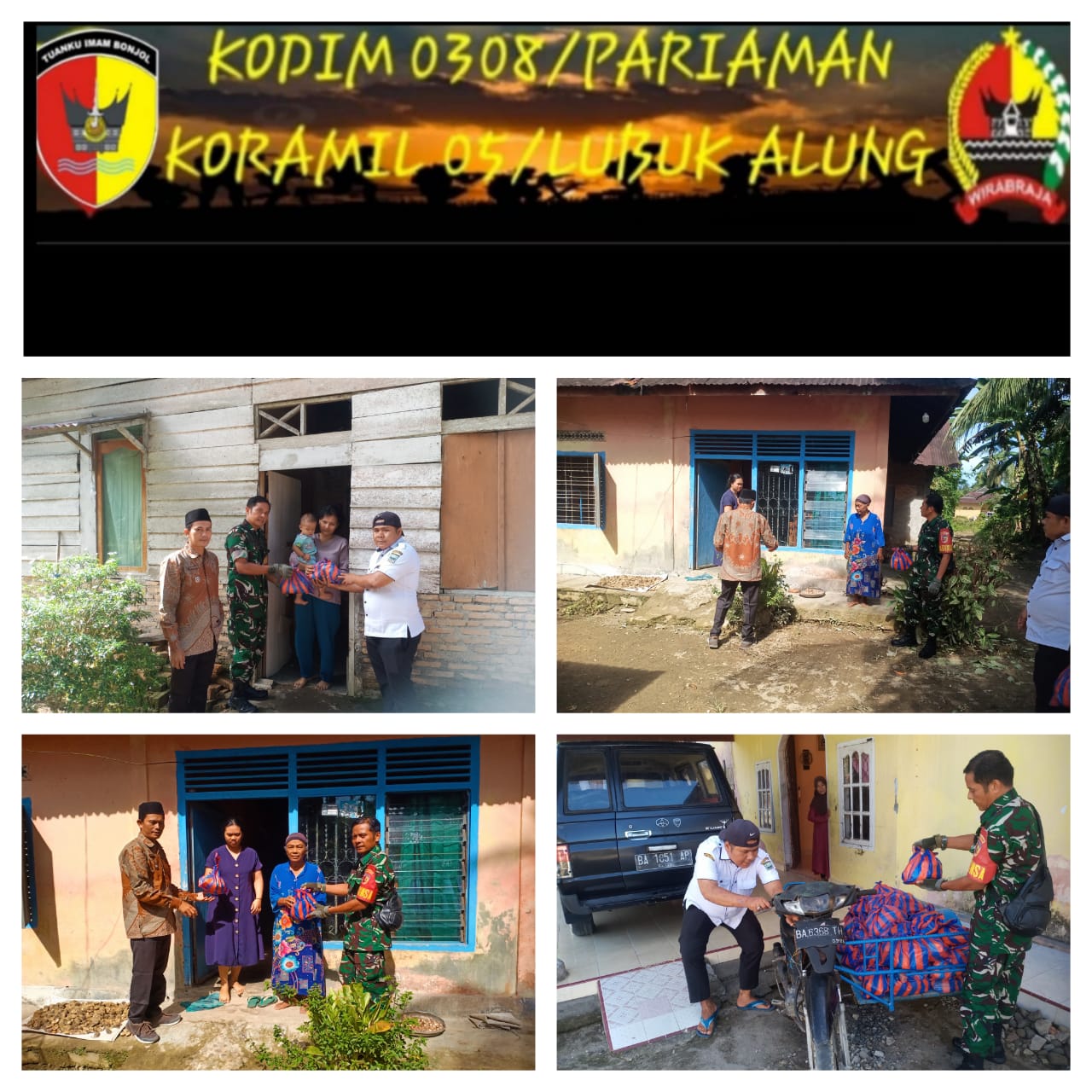 Bantuan sembako tersebut diberikan sebagai bentuk kepedulian pemerintah nagari dan TNI terhadap masyarakat yang mengalami kerugian akibat banjir yang melanda beberapa hari terakhir. Babinsa Koramil 05/Lubuk Alung turut hadir untuk memastikan penyaluran bantuan berjalan aman, tertib, dan tepat sasaran.