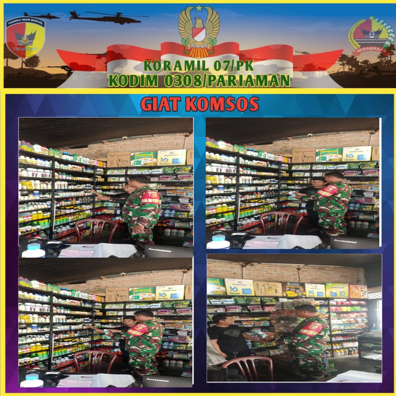 Kegiatan ini dilakukan sebagai bentuk kepedulian TNI terhadap sektor pertanian di wilayah binaan, sekaligus memastikan produk yang dijual sesuai dengan ketentuan dan tidak kadaluarsa. Dalam pengecekan tersebut, Serda Yendrizal berdialog dengan pemilik kios mengenai ketersediaan pupuk, pestisida, serta kebutuhan petani menjelang musim tanam.