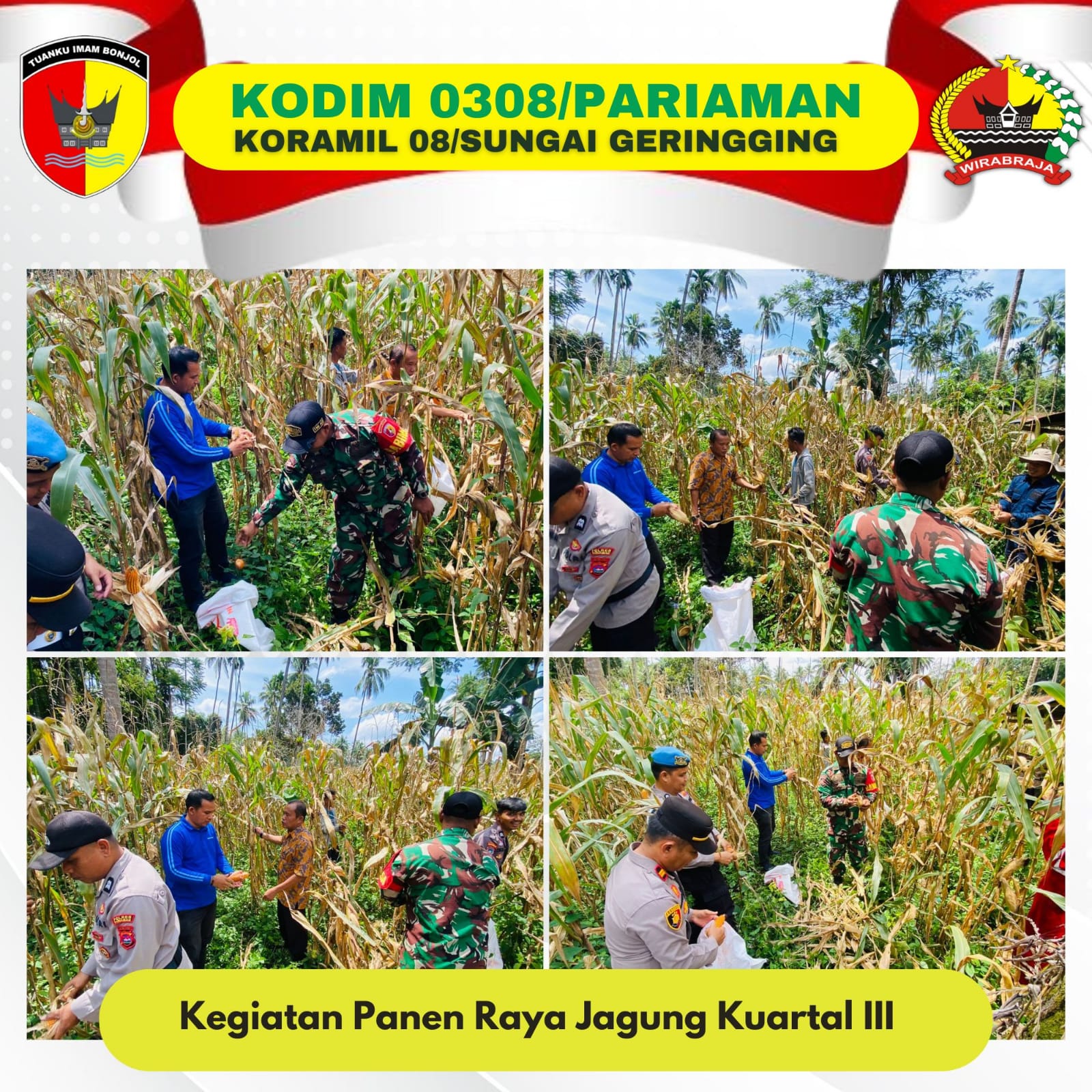 Sungai Geringging, kejarberita-news.com – Babinsa Koramil 08/Sungai Geringging Serda Hendra Petuma mewakili Danramil menghadiri undangan dari Polsek Sungai Geringging pada kegiatan Panen Raya Kuartal III Tahun 2025 yang dilaksanakan di Korong Lambeh, Nagari Malai III Koto, Kecamatan Sungai Geringging, Sabtu (27/09/2025).