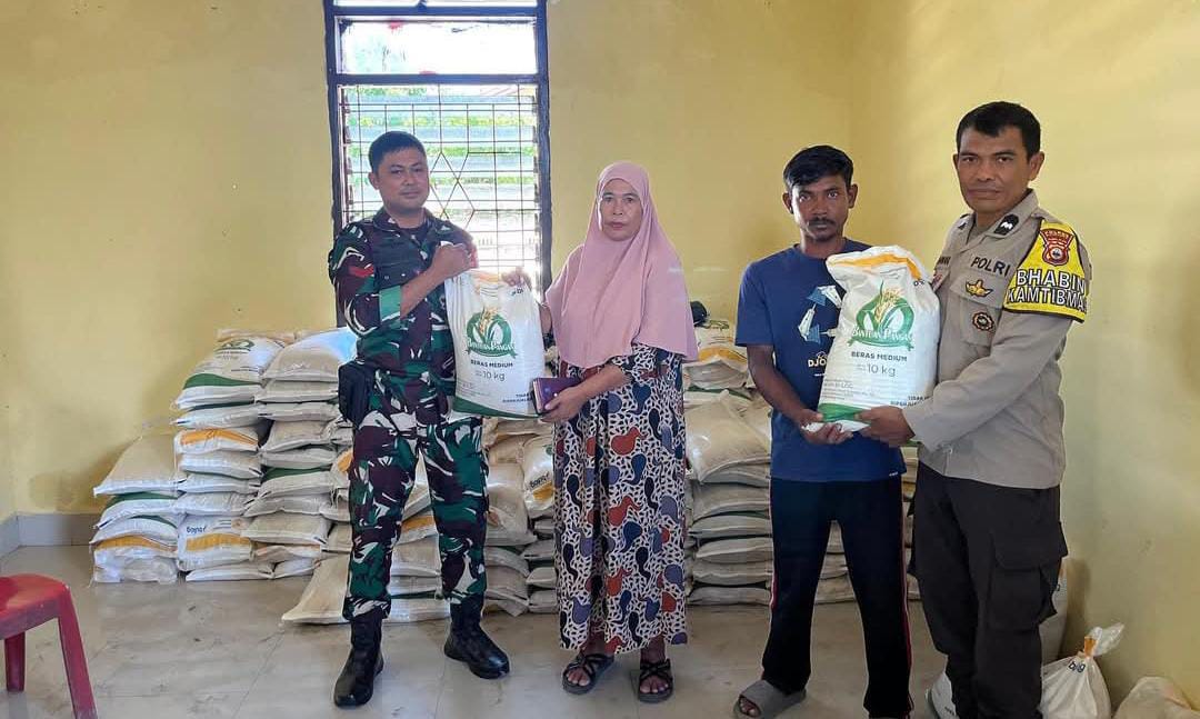 Koptu Syamsul Alam turut mendampingi jalannya distribusi bantuan untuk memastikan bahwa kegiatan ini berjalan lancar, tepat sasaran, dan sesuai dengan prosedur yang berlaku. Kehadiran Babinsa di tengah masyarakat memberikan rasa aman dan memberikan keyakinan bahwa bantuan sampai ke tangan yang berhak.