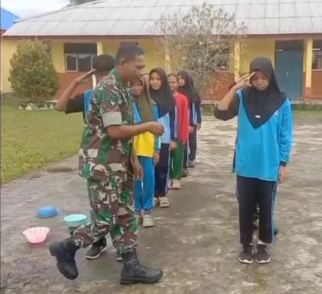 Kepala SMP Negeri 13 Huamual mengungkapkan terima kasih kepada Babinsa Koramil 1513-01/Piru yang telah meluangkan waktu membimbing para siswa.