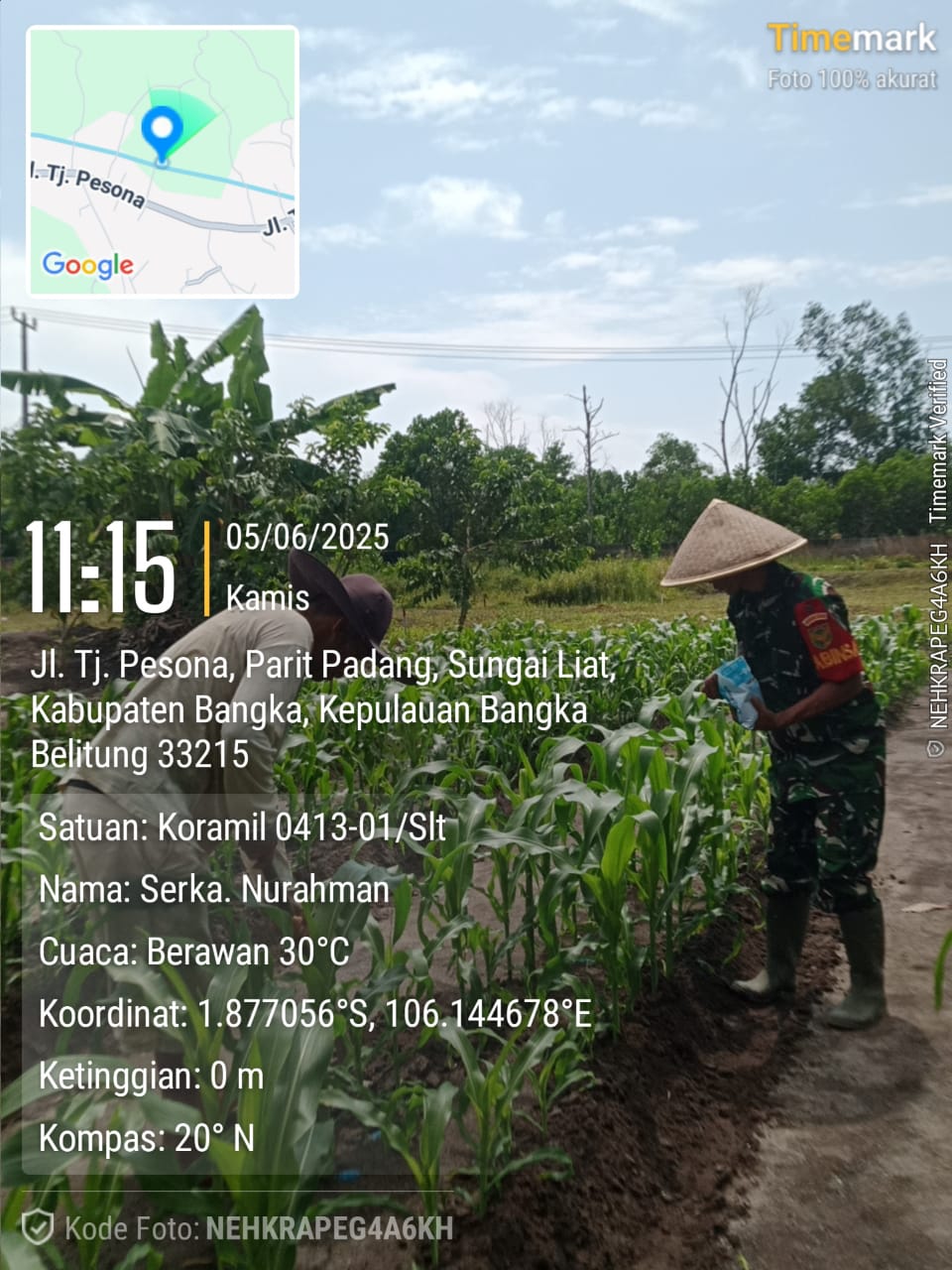 Sungailiat,Kejarberitanews.com-Wujud kepedulian Babinsa koramil 413-01/Sungailiat membantu warga desa binaan memupuk jagung miliknya bertempat di kelurahan jelitik, Kamis (05/06/2025)