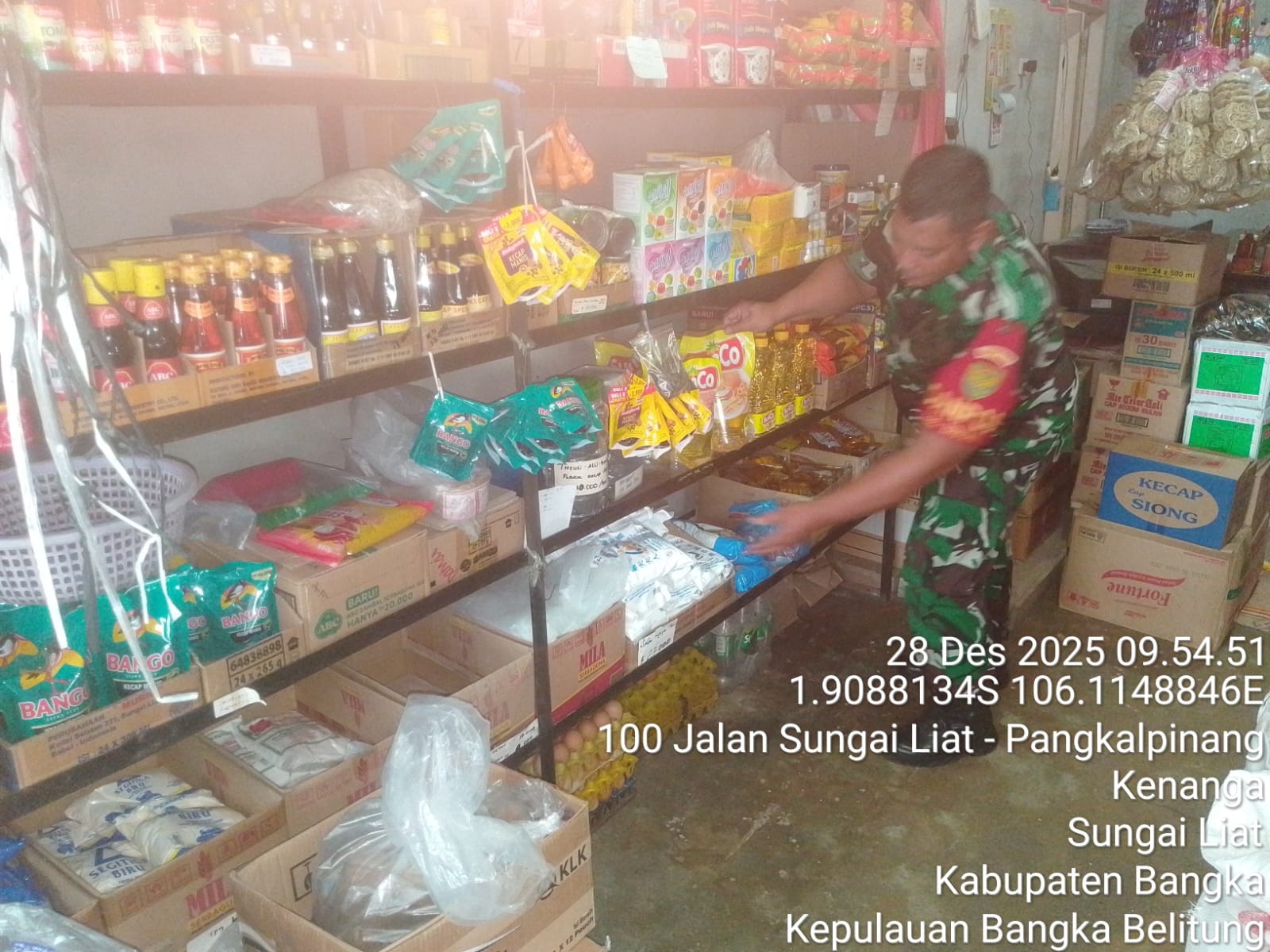 Sungailiat, kejarberita-news.com – Guna memastikan stabilitas pangan dan mengantisipasi lonjakan harga menjelang pergantian tahun baru 2026, Babinsa Koramil 413-01/Sungailiat, Sertu Turrahman, melaksanakan monitoring langsung ke pasar dan toko kelontong di wilayah binaannya pada Minggu (28/12/2025).
