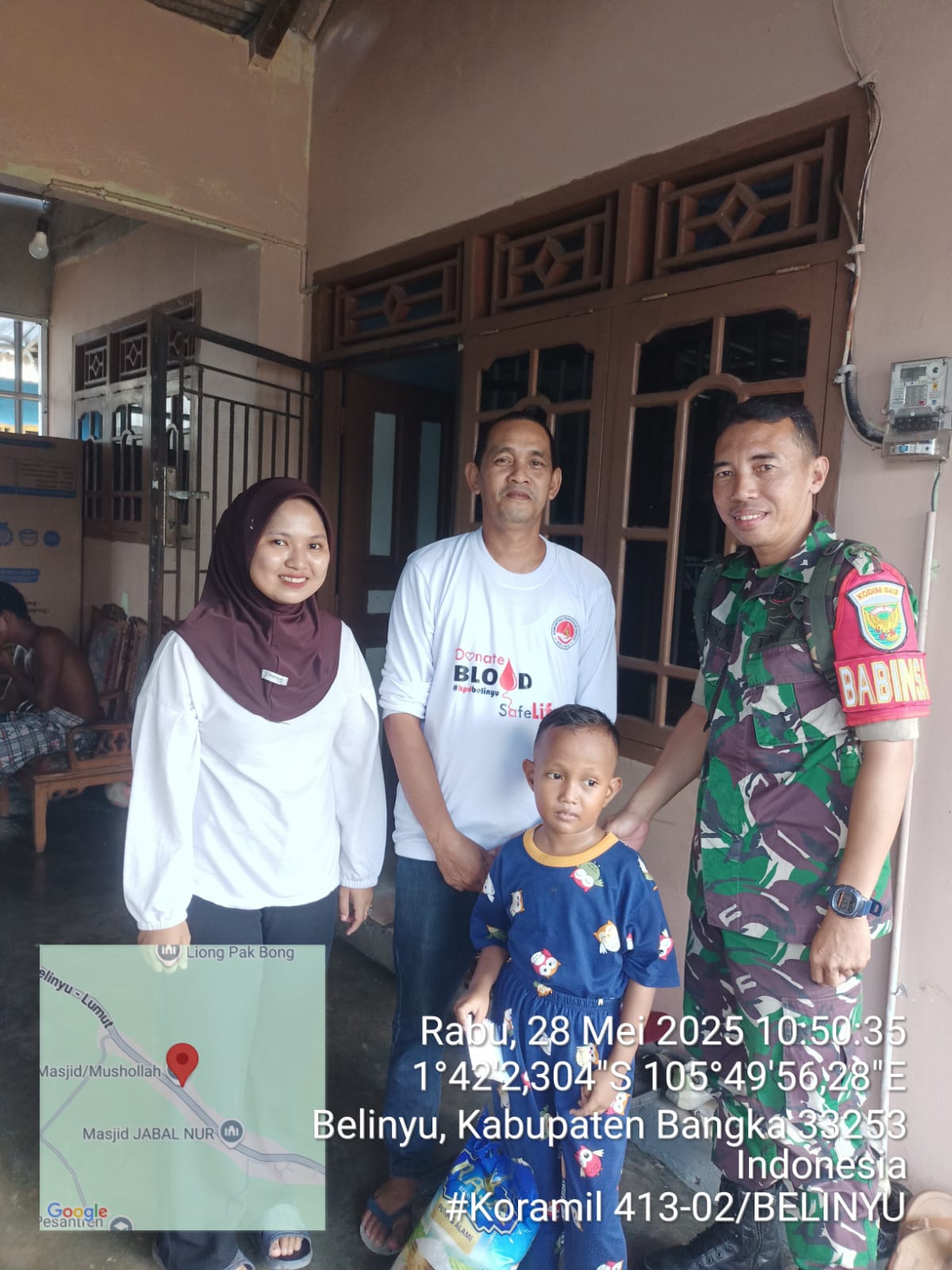 Belinyu,kejarberitanews.com-Bentuk kepedulian terhadap warga binaan Babinsa koramil 413-02/Belinyu Berikan Langsung Bantuan Sembako Dan Donasi Terhadap Warga Binaan Yang Menderita Thalasemia bertempat di kecamatan belinyu, Rabu (28/05/2025)