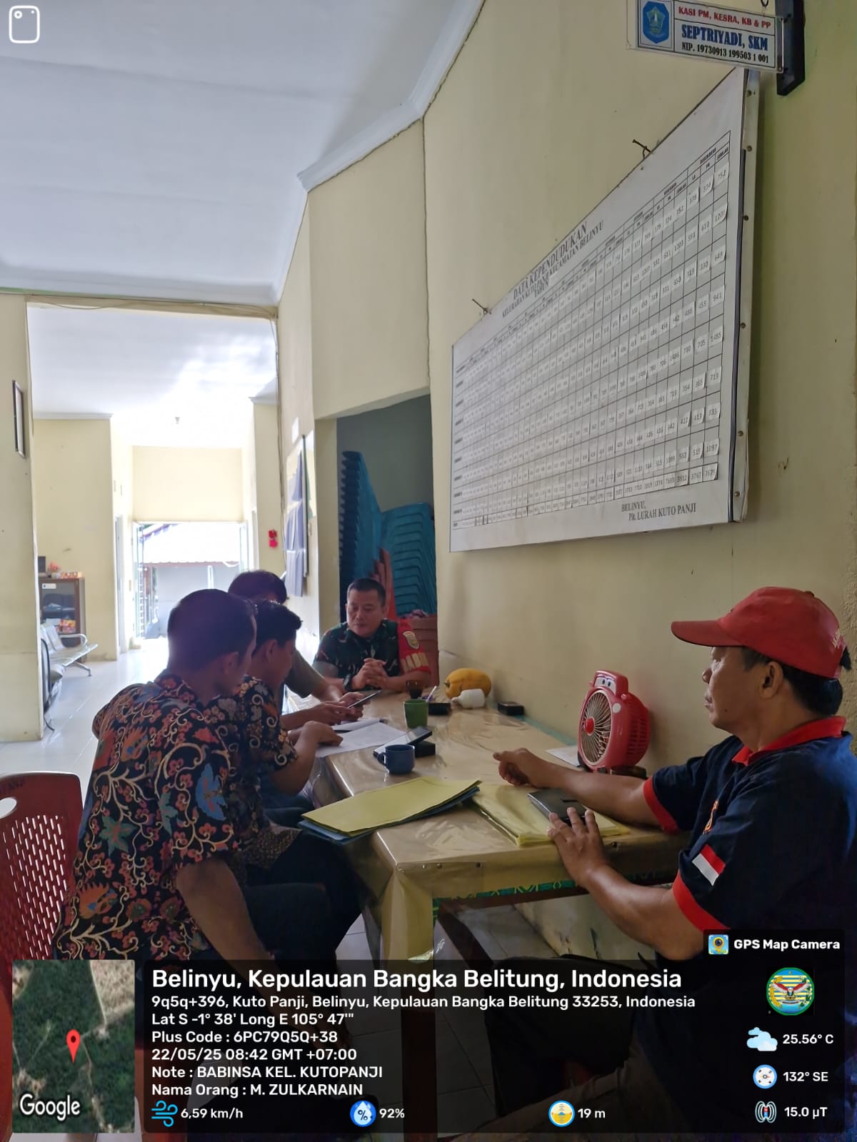Belinyu,kejarberitanews.com-Babinsa koramil 413-02/Belinyu Melaksanakan Komsos Dengan Lurah Guna Membantu Warga Yang Berkebutuhan khusus Bertempat di kantor kelurahan kutopanji, Kamis (22/05/2025)