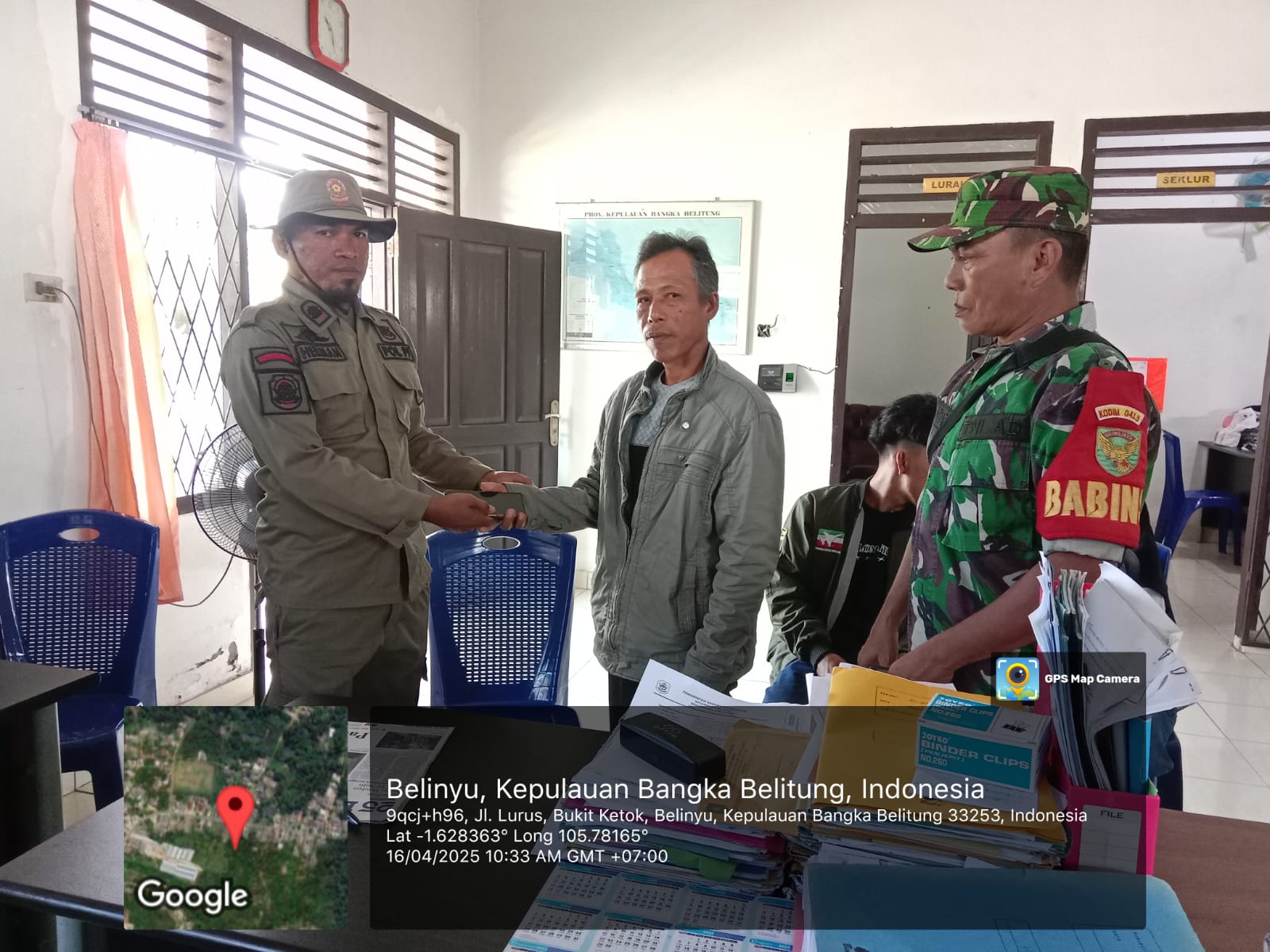 Belinyu,kejarberitanews.com-Peran aktif Babinsa koramil 413-02/Belinyu yang menjadi penengah dalam mediasi permasalah warga binaannya di kantor lurah air asam, Rabu (16/04/2025)