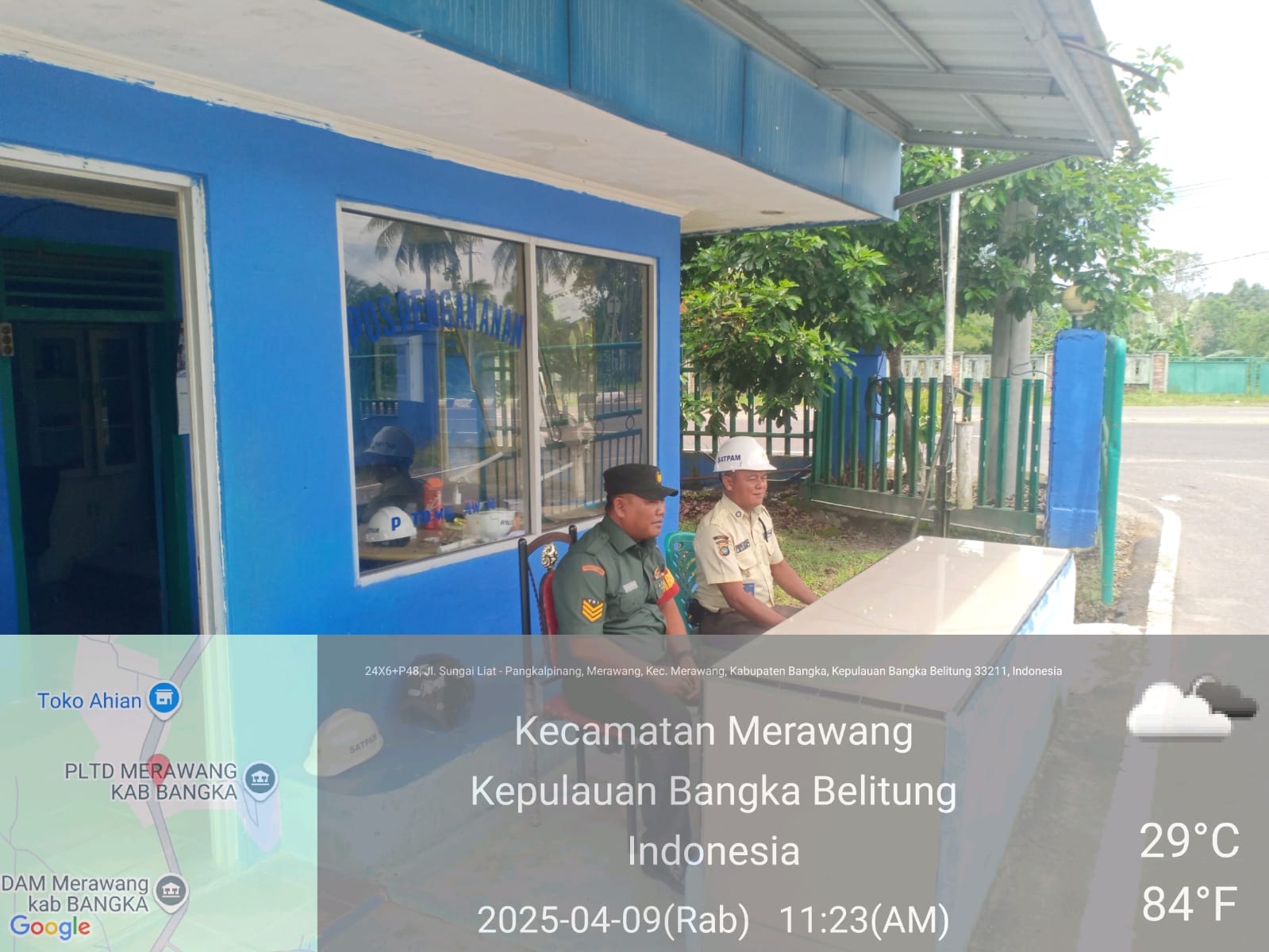 merawang,kejarberitanews.com-Tingkatkan keamanan di wilayah binaan babinsa koramil 413-03/Merawang komsos dengan security PLTD bertempat di kecamatan merawang Kabupaten Bangka, Rabu (09/04/2025)