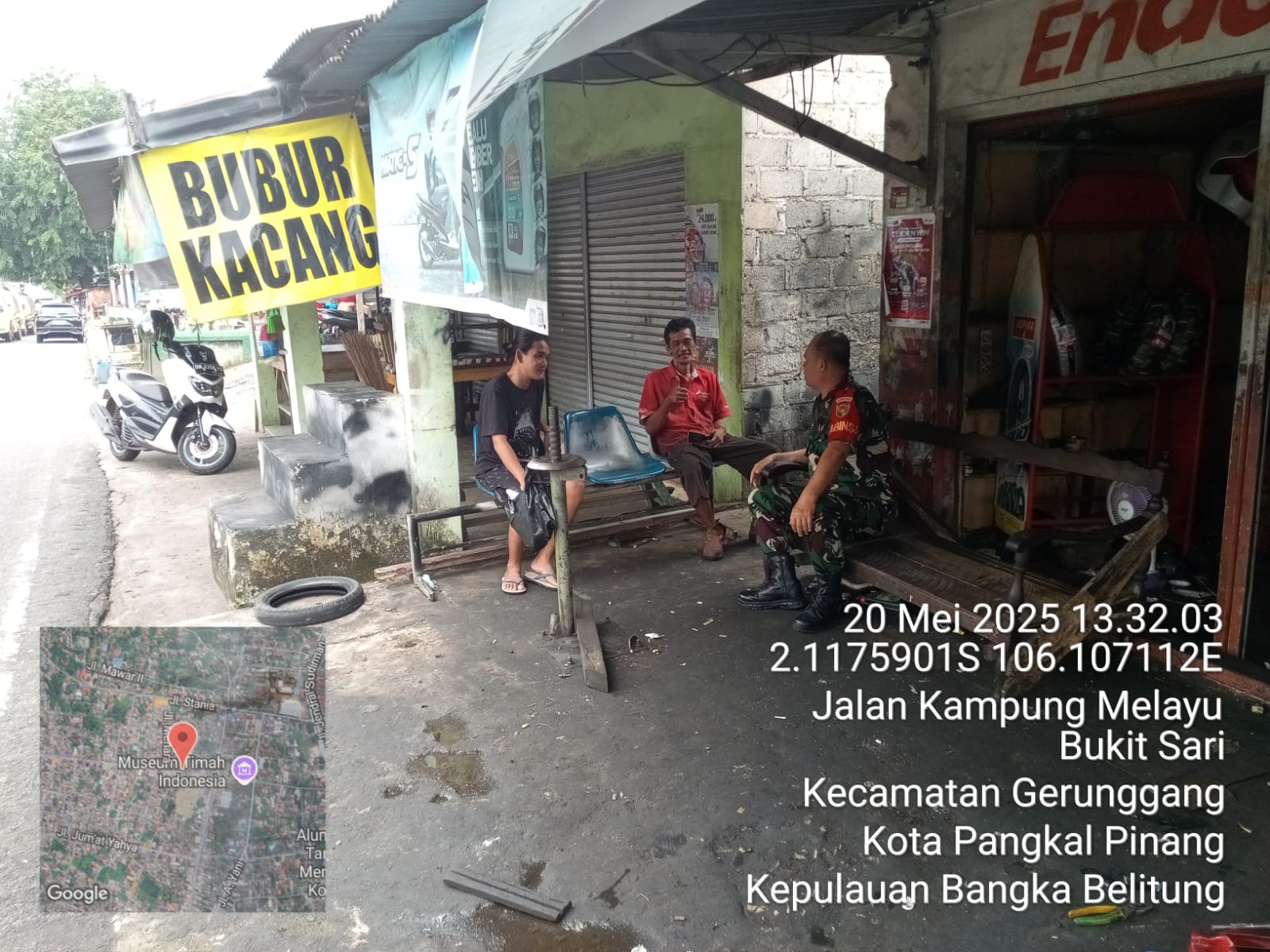Tamansari,kejarberitanews.com-Komsos dengan pemilik bengkel motor Babinsa koramil 413-05/Taman sari berikan masukan terhadap warga binaan pemilik usaha bertempat di Jl. Kampung Melayu, Selasa (20/05/2025)