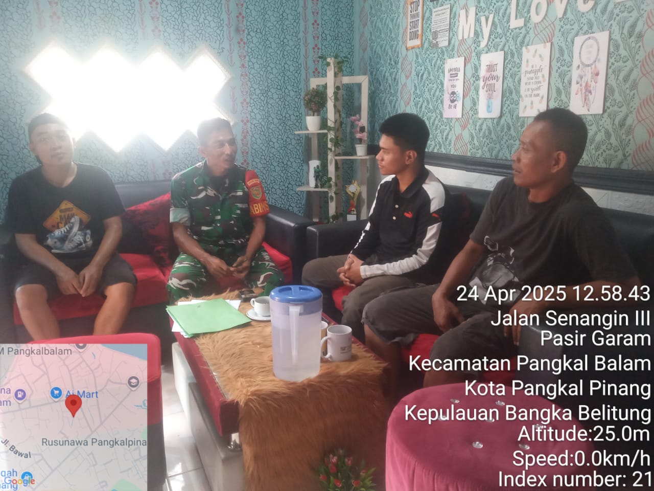 Taman sari,kejarberitanews.com-Babinsa koramil 413-05/Taman Sari komsos sosialisasikan penerimaan Bintara dan Tamtama Pk TNI AD Tahun 2025 kepada warga binaan bertempat di Kelurahan Pasir Garam kecamatan Pangkal balam, Kamis (24/04/2025)