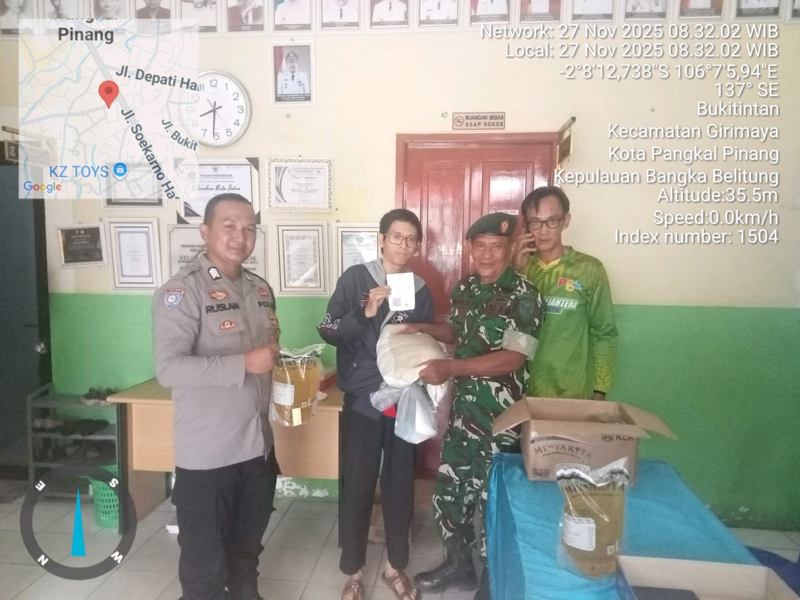 Bukit Intan, kejarberita-news.com – Koramil 413-06/Bukit Intan bekerja sama dengan Badan Pangan Nasional menyalurkan bantuan pangan kepada masyarakat kurang mampu di wilayah Kelurahan Batu Intan, Kecamatan Girimaya, Kota Pangkalpinang di Kantor Kelurahan Batu Intan, Kamis (27/11/2025)