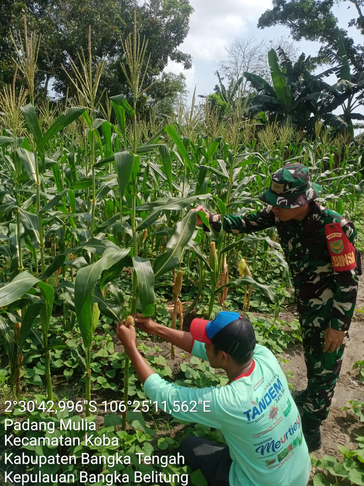 koba,kejarberitanews.com-Dukung ketahanan pangan Babinsa Koramil 413-07/Koba melaksanakan komsos rutin dengan warga binaan yang berprofesi sebagai petani jagung bertempat di kecamatan Koba, Jumat (16/05/2025)