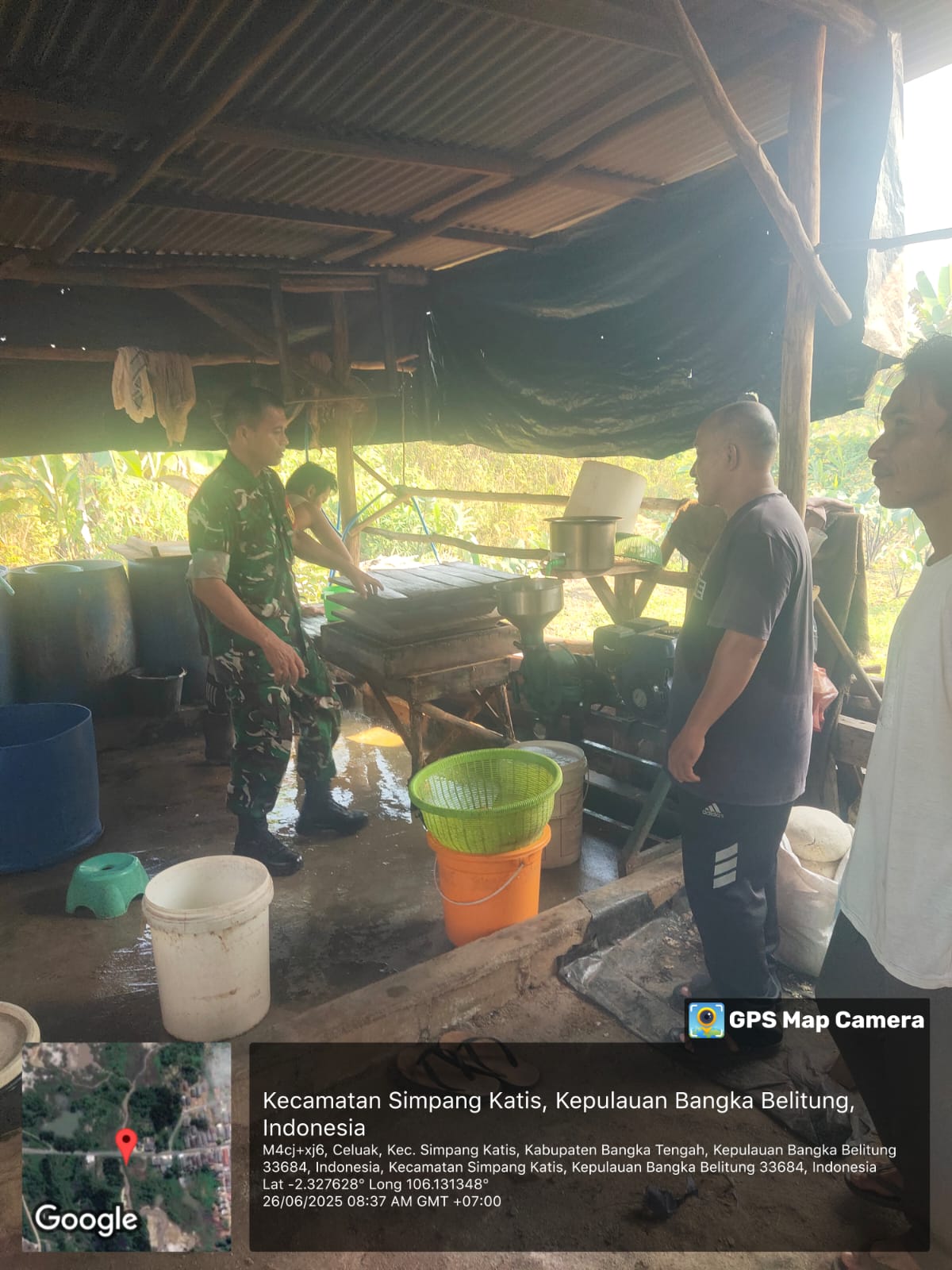 sungaiselan,kejarberitanews.com-Dukung produk UMKM Babinsa koramil 413-08/Sungaiselan berikan masukan kepada warga binaan pembuat tahu bertempat di Desa Celuak kecamatan Simpang katis, Kamis (26/06/2025)