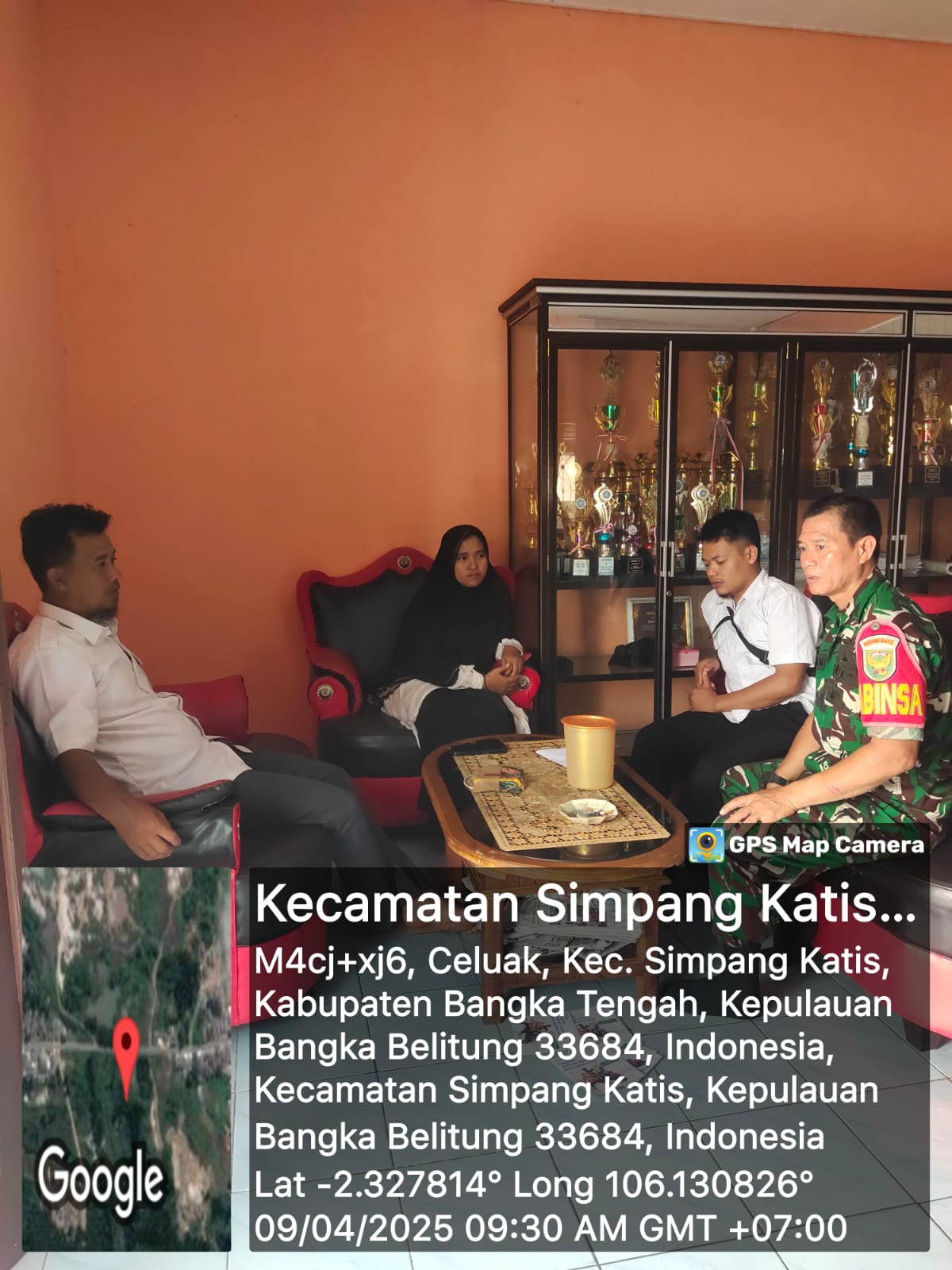 sungaiselan,kejarberitanews.com-Babinsa koramil 413-08/Sungaiselan Komsos Dengan Perangkat Desa Bahas tentang keamanan Dan ketertiban di wilayah desa binaan di kantor desa pinang sebatang, Rabu (09/04/2025)