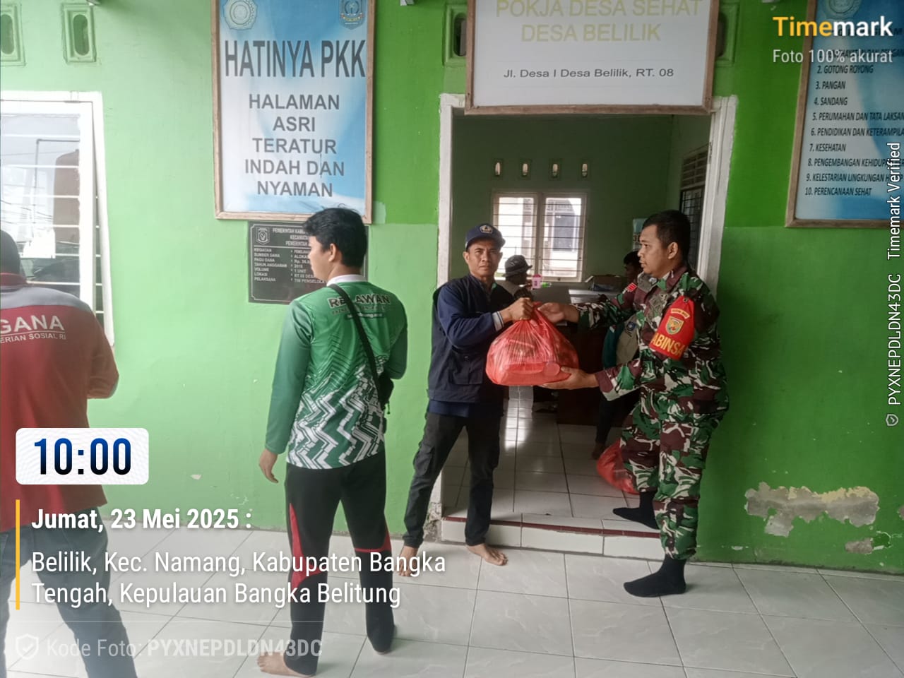 Praka Darya selaku babinsa juga turut hadir dengan tujuan untuk memastikan penyaluran bantuan berjalan lancar serta memberikan rasa aman dan dukungan moril kepada warga yang terdampak.