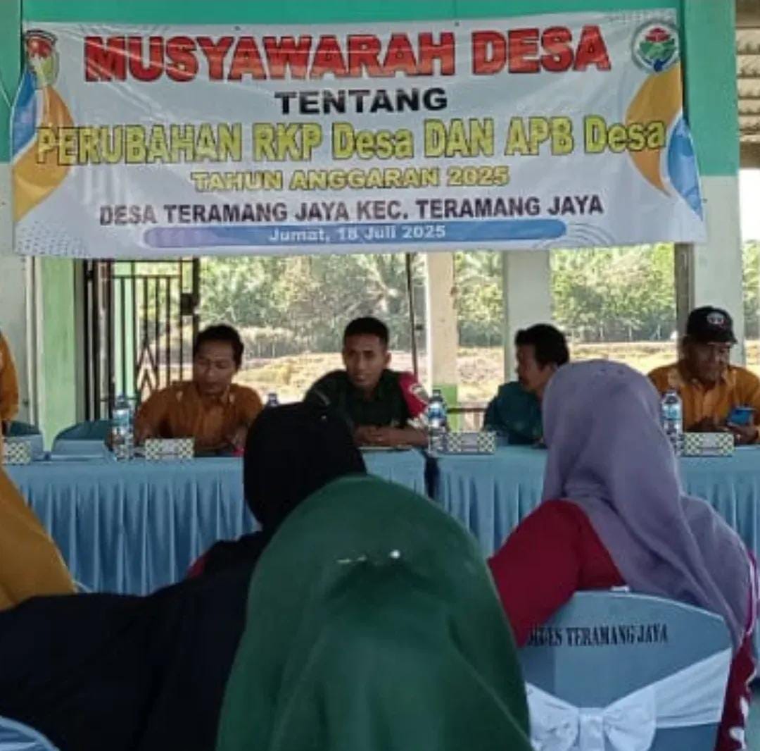 Mukomuko, kejarberita-news.com – Acara Musyawarah Desa Penetapan Perubahan Anggaran Pendapatan dan belanja Desa (APBDes dan RKPDes) Desa Teramang Jaya tahun anggaran 2025 yang bertempat di Kantor Desa Aula Teramang Jaya, Kec.Teramang Jaya, Kab. Mukomuko Jum’at, (18/07/2025)
