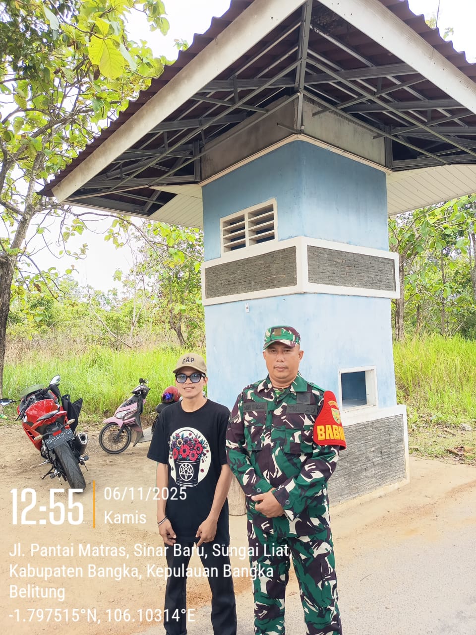 Babinsa Matras Jalin Komsos dengan Penjaga Gerbang, Pantau Keamanan dan Kondisi Wisatawan Pantai Matras