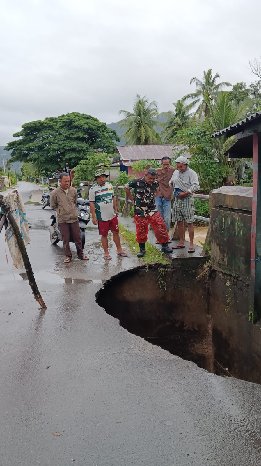 Babinsa bersama perangkat nagari dan warga setempat melakukan pengecekan awal serta memberikan imbauan kepada masyarakat agar berhati-hati dan menghindari penggunaan jalur tersebut untuk sementara waktu. Tim terkait juga telah dikoordinasikan untuk melakukan penanganan lebih lanjut dan meminimalisir risiko kecelakaan.