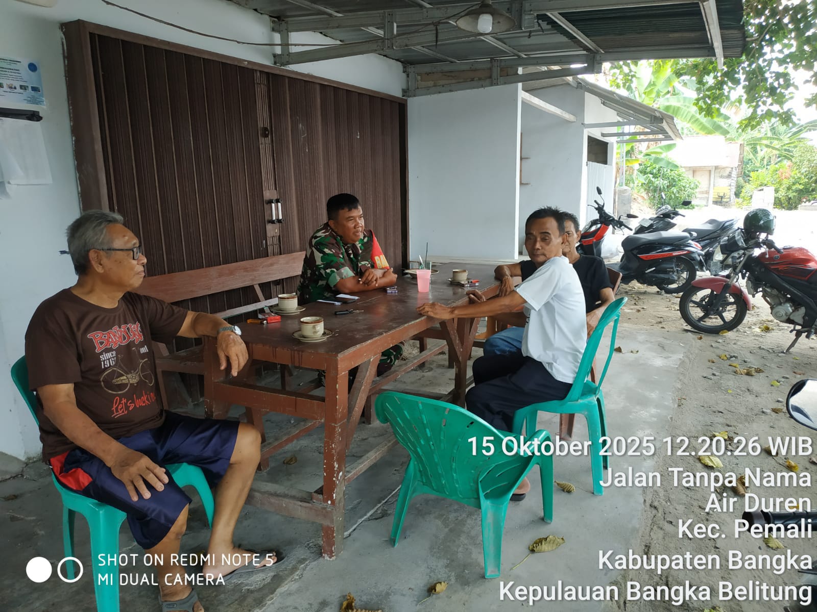Pemali, kejarberita-news.com-Komsos yang intens terus dilakukan oleh jajaran TNI AD di wilayah teritorial. Hari ini, Sertu Yulianto, Babinsa Desa Air Duren dari Ramil 413-01/Sungailiat, melaksanakan Komsos dengan warga di Desa Air Duren, Kecamatan Pemali, Rabu (15/10/2025)