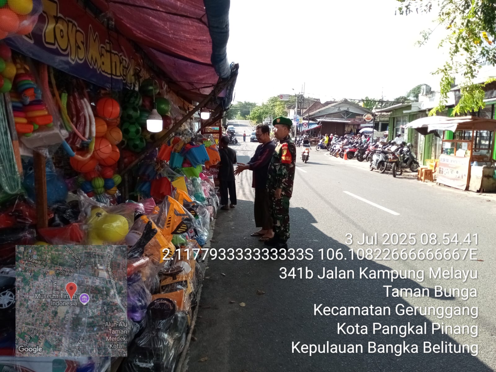 Pangkalpinang, kejarberitanews.com – Komsos Bersama Pedagang Mainan babinsa koramil 413-05/Taman Sari Berikan Motivasi dan Semangat Berdagang bertempat di Jl.Kampung Melayu, Kamis (03/07/2025)