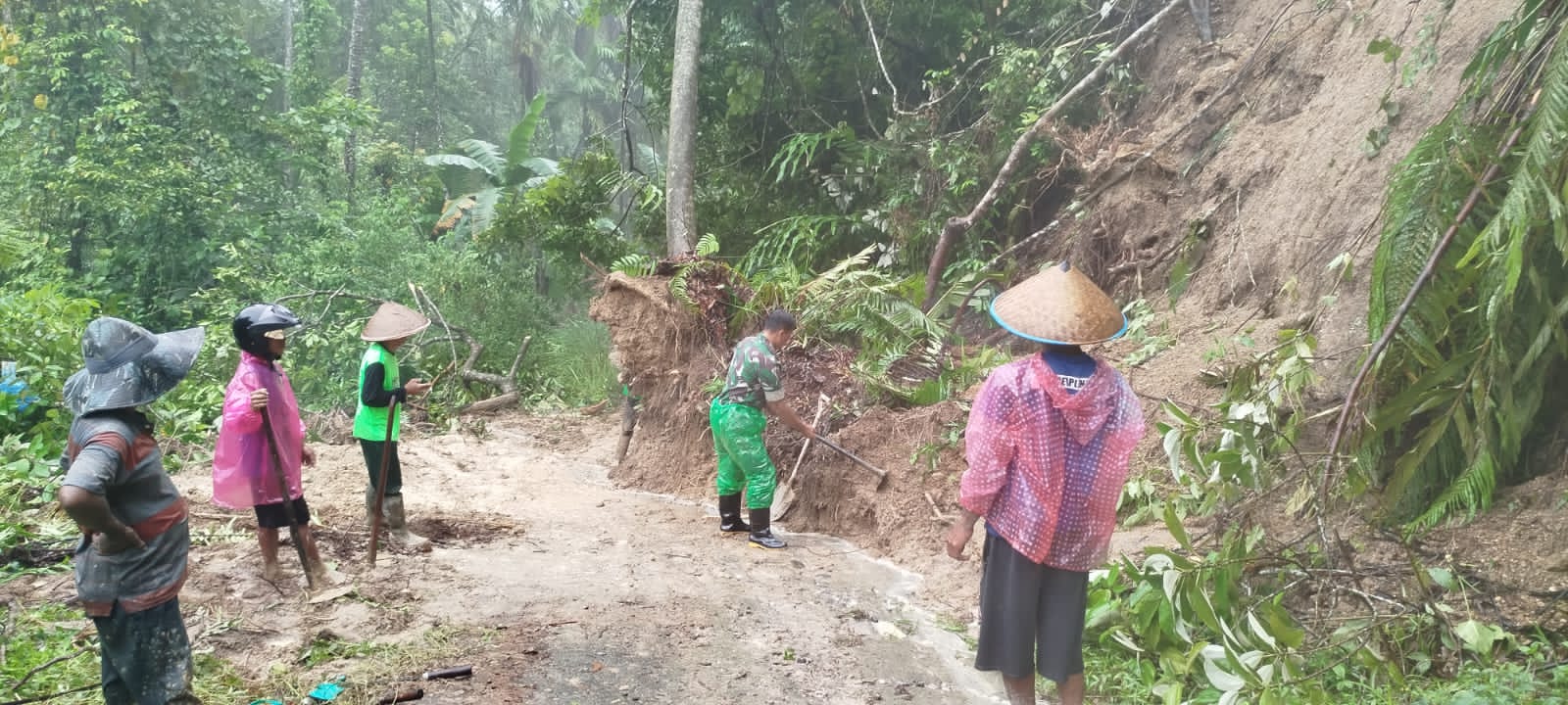 Di sela kegiatan, Serka Yuni Yanto mengimbau masyarakat untuk sementara waktu tidak melintasi jalur tersebut mengingat kondisi tanah yang masih labil dan berpotensi terjadinya longsor susulan.