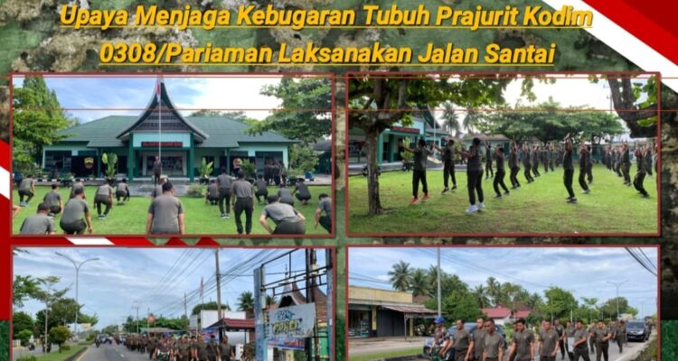 PARIAMAN,kejarberitanews.com-Dalam upaya menjaga dan meningkatkan kebugaran tubuh, Prajurit Kodim 0308/Pariaman melaksanakan jalan
