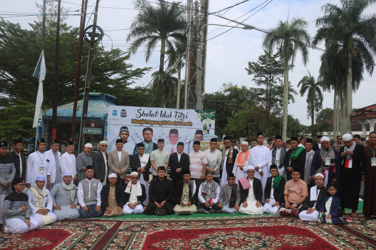 Bertempat di halaman Masjid Agung kubah timah pelaksanaan shalat Idul Fitri tahun ini terbilang lebih semarak, karena diikuti ratusan bahkan ribuan masyarakat yang sangat semarak dan antusias