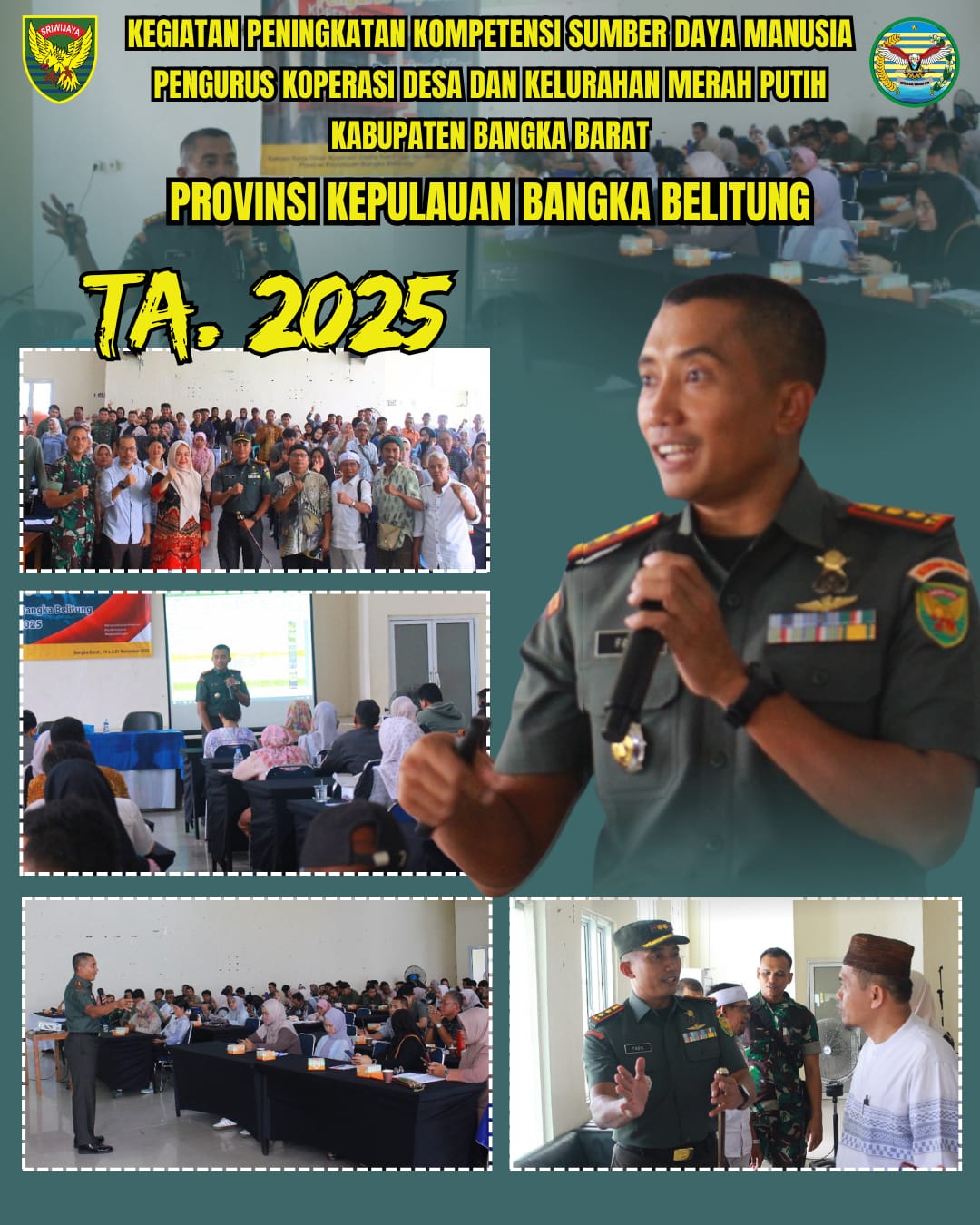 Bangka Barat, kejarberita-news.com – Komando Distrik Militer (Kodim) 0431/Bangka Barat mendukung penuh upaya peningkatan kapasitas pengelolaan koperasi desa. Hal tersebut terlihat saat Dandim 0431/Bangka Barat Letkol Czi Fadil, S.E., M.I.P hadir sebagai narasumber pada kegiatan Peningkatan Kompetensi Sumber Daya Manusia (SDM) Koperasi Desa/Kelurahan Merah Putih yang berlangsung di Gedung Serba Guna Kecamatan Mentok, Jumat (21/11/2025)