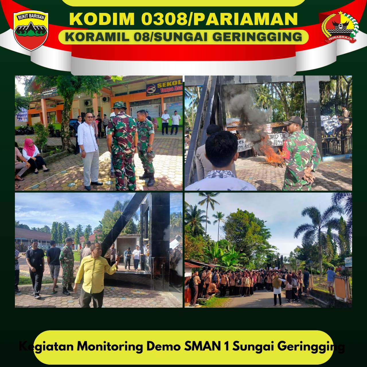 Adapun untuk pengamanan Demo siswa / siswi SMA Negeri 1 Sungai Geringging Sbb, Lima (5) orang anggota Koramil 08/sungai Geringging, Tujuh (7) Orang Anggota polsek Sungai Geringging.