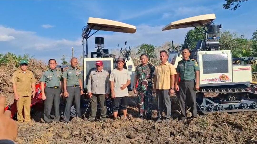 MendoBarat,kejarberitanews.com-Danramil 413-04/Mendo barat Dampingi Kasrem 045/Gaya bersama BPSIP Provinsi laksanakan pendampingan penyerahan bantuan alat dari kementan RI bertempat di Sawah bumang Desa Kemuja, Senin (05/05/2025)