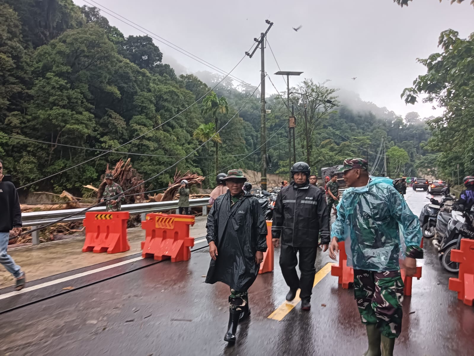 Danrem 032/Wbr Tinjau Lokasi Longsor yang Memutus Jalan Lintas Padang–Bukittinggi di Mega Mendung