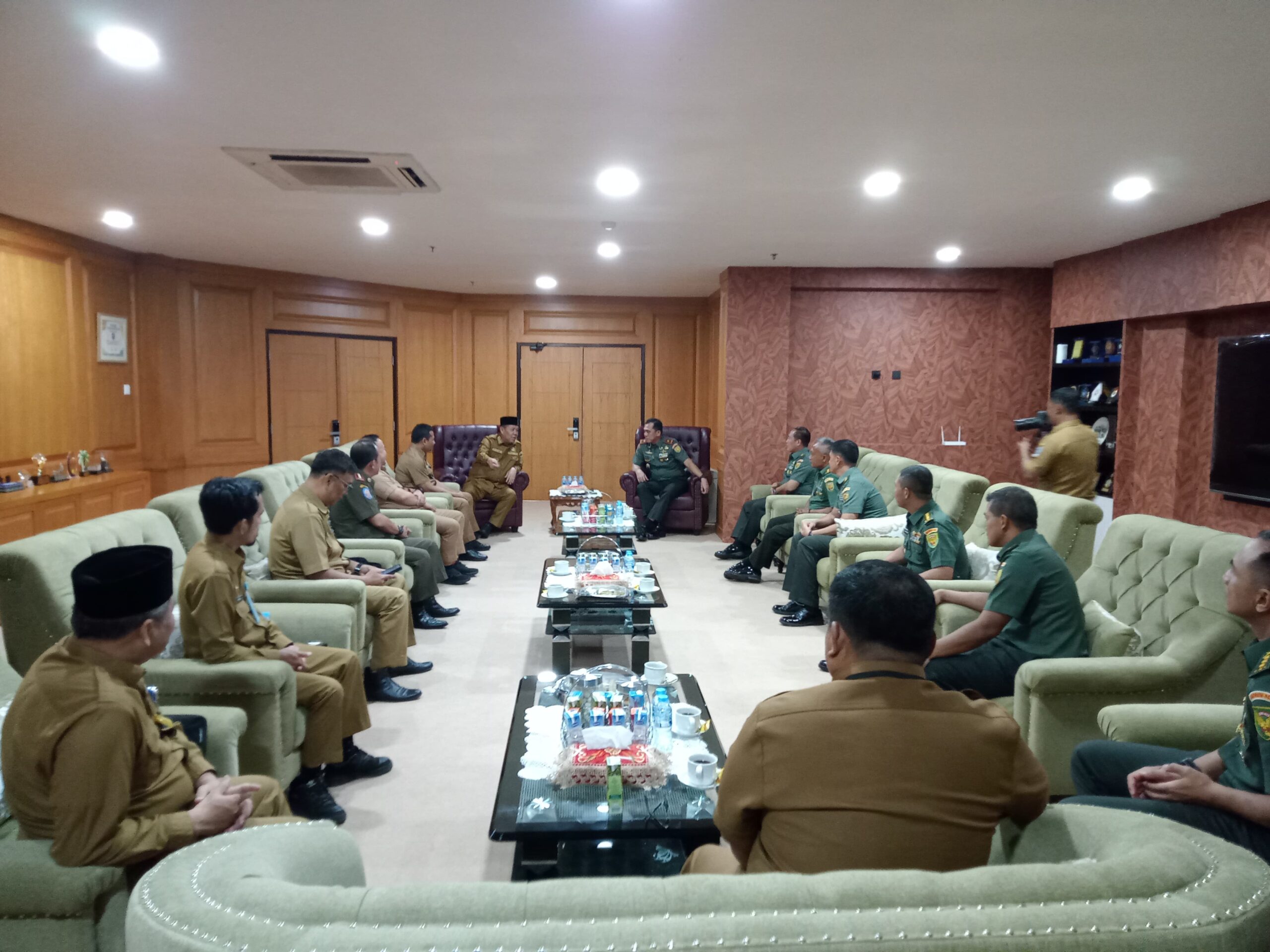 Lanjut Brigjen TNI Safta Feryansyah mengatakan dari Angkatan Darat maupun TNI ada kegiatan yang sudah bekerja sama dengan pemerintah daerah di wilayah, di pertanian kita sudah berjalan nanti ada tim yang akan audiensi ke bapak. Untuk penanaman karena target-target yang sudah dilaksanakan diwilayah ini bekerja sama dengan tim kita, yang lain-lain ketahanan pangan sudah mulai berjalan, nanti ada pembangunan, TMMD atau karya bakti yang bisa dilaksanakan dengan pihak TNI. Kami siap kata Danrem.