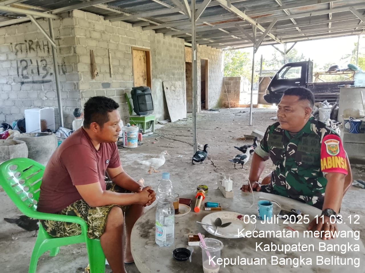 Merawang, kejarberitanews.com – Gelar komsos babinsa koramil 413-03/Merawang Sambangi warga binaan yang berprofesi sebagai peternak bebek bertempat di Jl.Konfoi desa merawang, Kamis (03/07/2025)