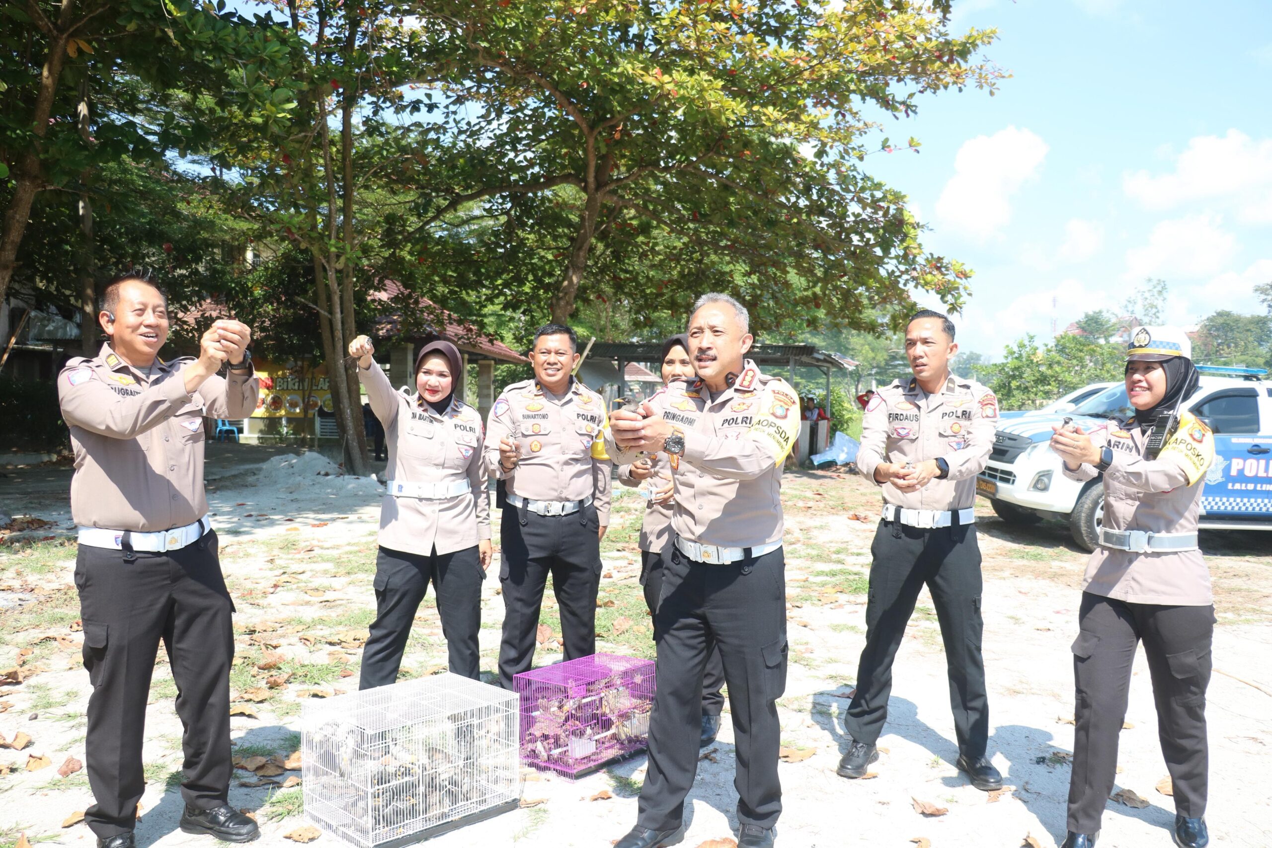 Selain ikan, jajaran Ditlantas juga melepas 100 ekor burung dikawasan taman tersebut. Burung yang dilepaskan mulai dari jenis kutilang hingga perkutut.