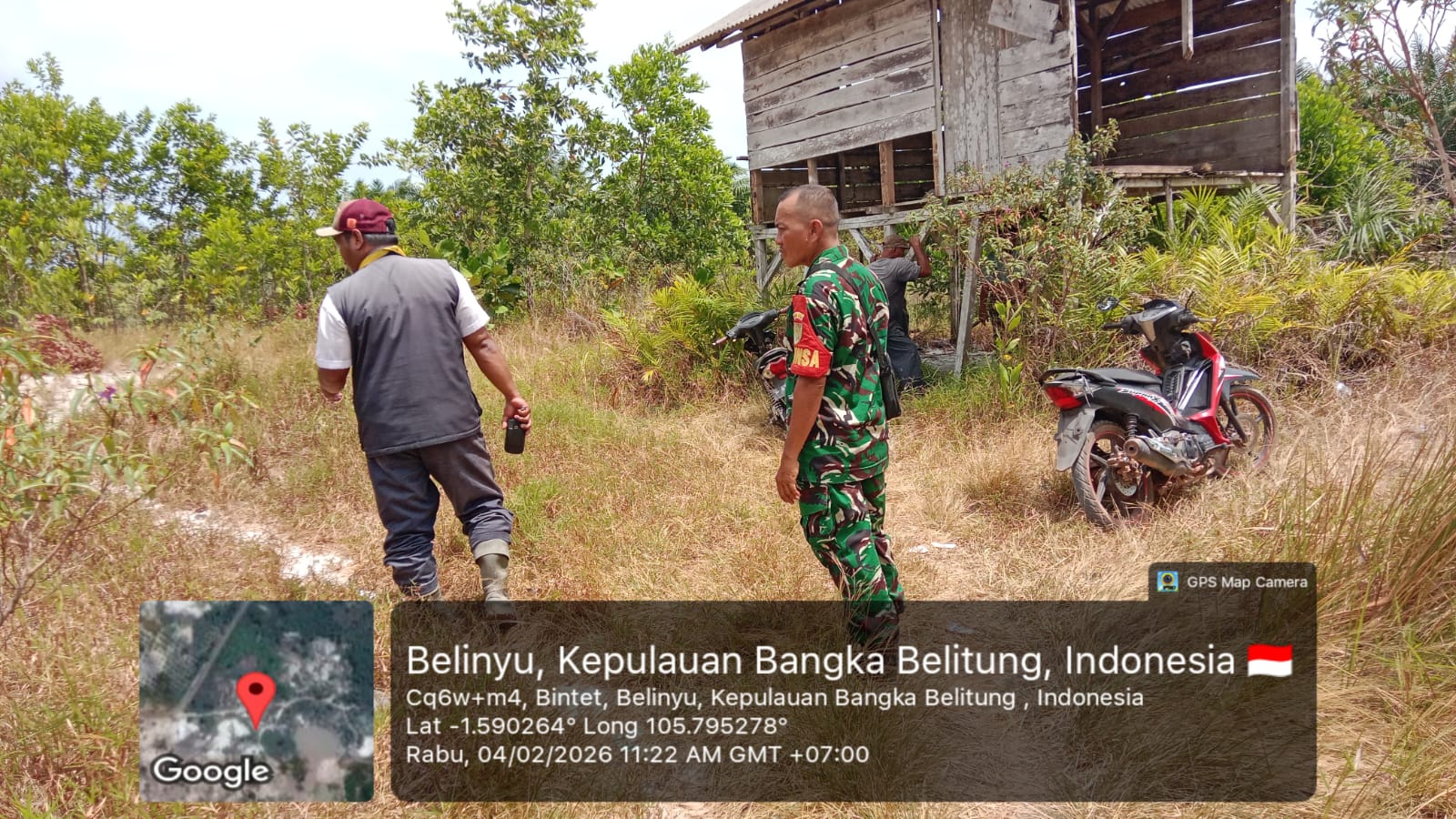 Belinyu, kejarberita-news.com – Langkah nyata dalam mendukung ketahanan pangan nasional terus diperkuat di tingkat wilayah. Babinsa Kelurahan Bukit Ketok, Pelda Ikadir dari Koramil 413-02/Belinyu, melaksanakan survei lahan yang diproyeksikan sebagai lokasi pembangunan KDKMP Merah Putih di Kampung Bantam, Rabu (04/02/2026)