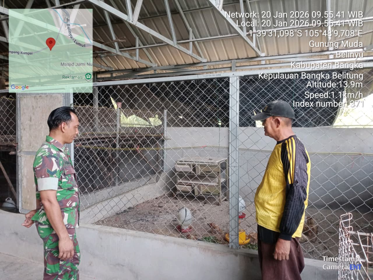 Gunung Muda, kejarberita-news.com – Babinsa Desa Gunung Muda Koramil 413-02/Belinyu, Sertu Toar, melaksanakan pemantauan sekaligus koordinasi terkait program Ketahanan Pangan ternak ayam di Kawasan Desa Mandiri Pangan Desa Gunung Muda, Selasa (20/1/2026).