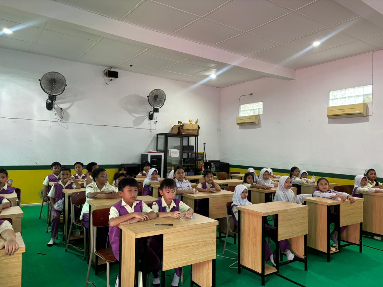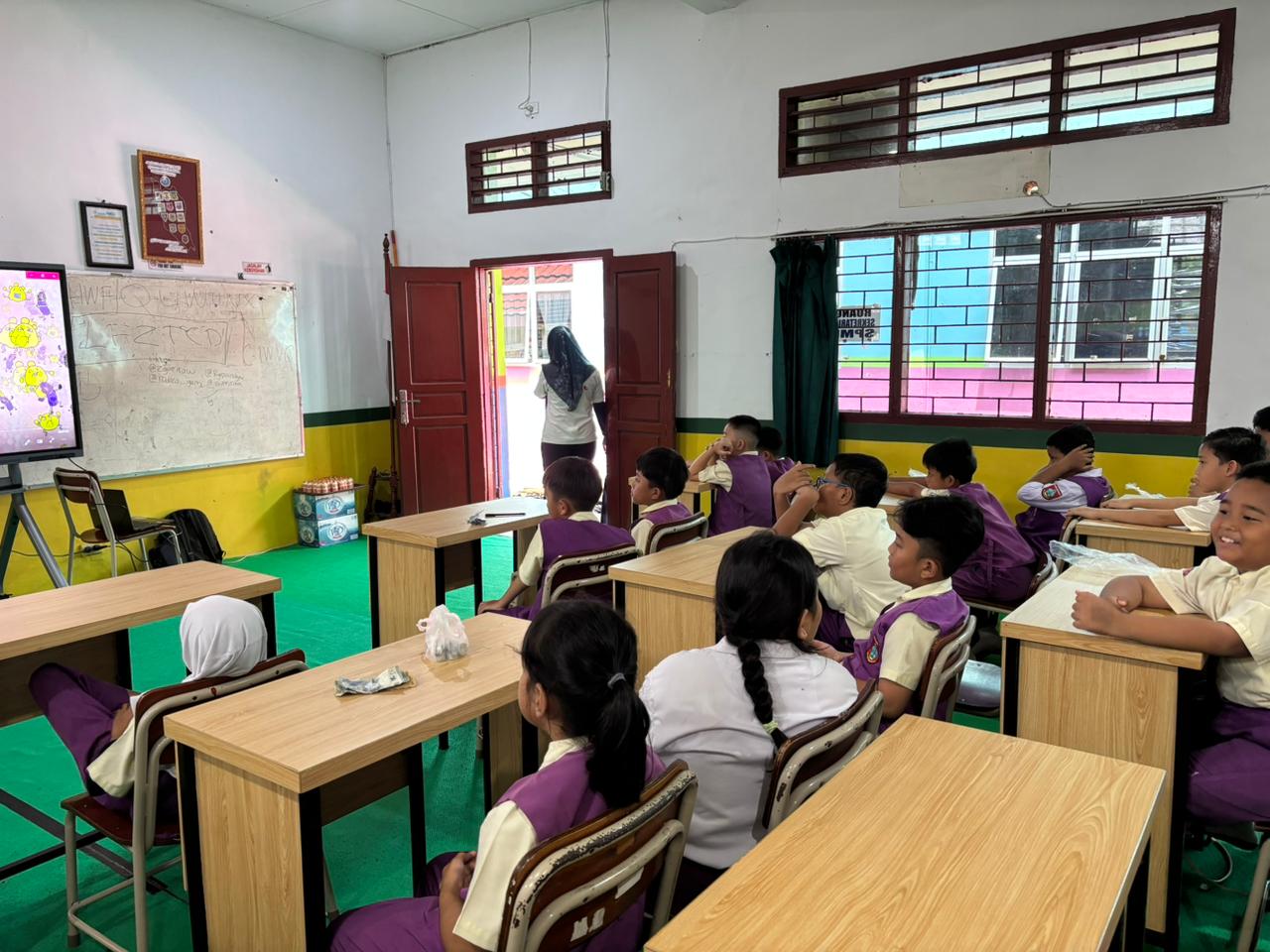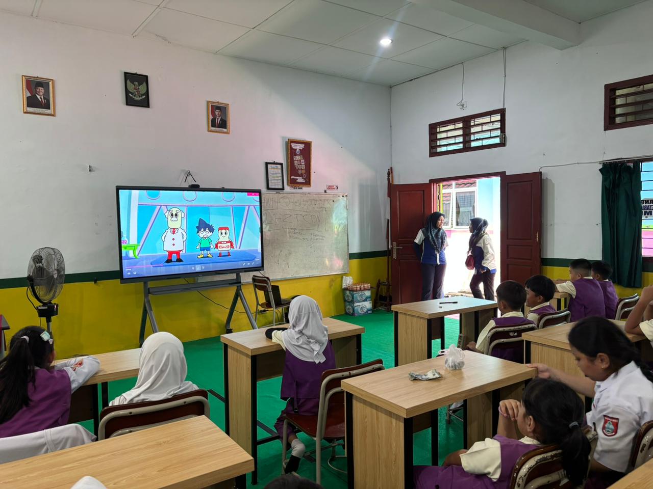 Dalam suasana yang interaktif, para siswa diajak menonton film animasi edukatif tentang anak yang kurang menyukai sayur serta penjelasan mengenai pentingnya pola makan sehat. Anak-anak juga terlihat aktif menjawab pertanyaan, memperhatikan materi yang disampaikan, dan berpartisipasi selama kegiatan berlangsung.