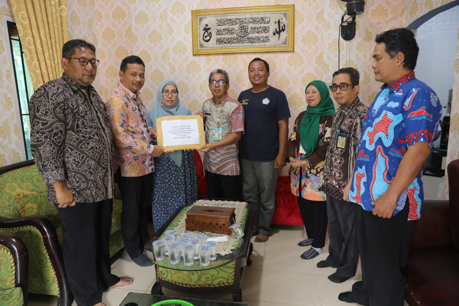 Didampingi Tim ASN Peduli Babel, Pj Sekda Fery menyerahkan secara langsung tali asih dari ASN Peduli Babel tersebut ke Istri almarhum Raju.